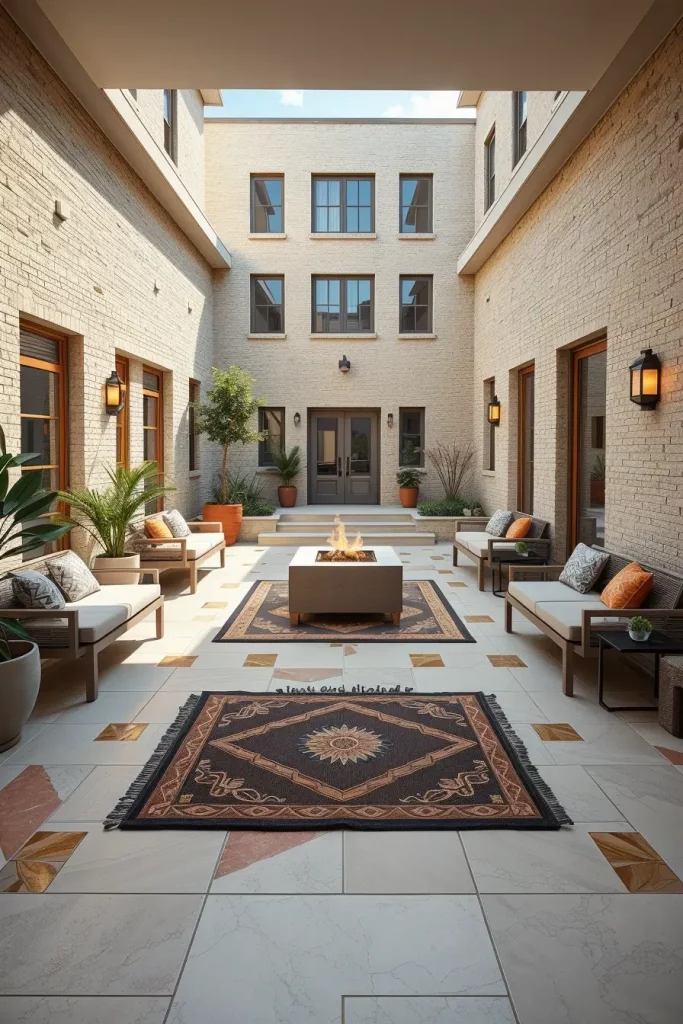 Personally, I believe courtyards offer the best opportunity to experiment with bold yet refined design moves. Elle Decor often highlights how flooring can anchor the entire visual identity of a space, and I have seen how a thoughtful pattern instantly elevates even a small courtyard into something unique and memorable.