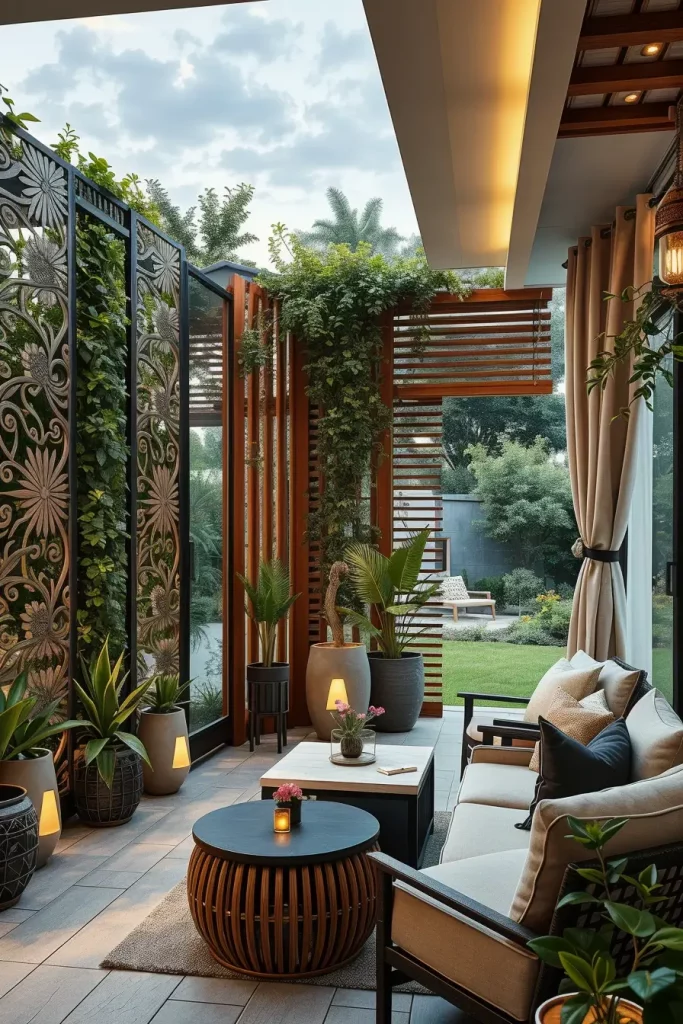 Creative Privacy Solutions With Decorative Screens And Green Walls