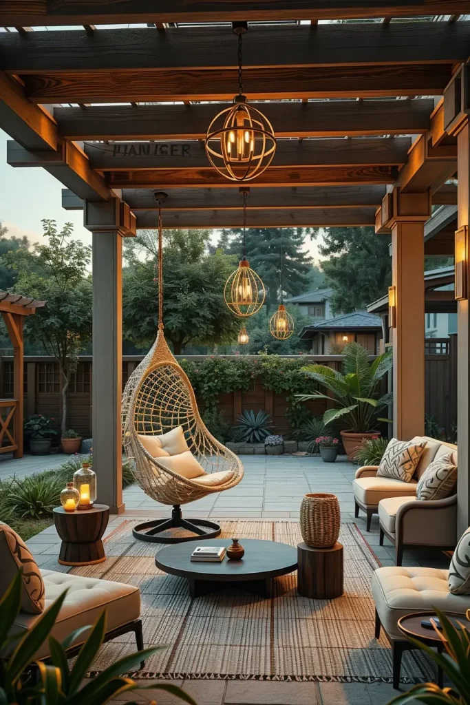 Contemporary Boho-Inspired Outdoor Relaxing Area With Modern Elegance