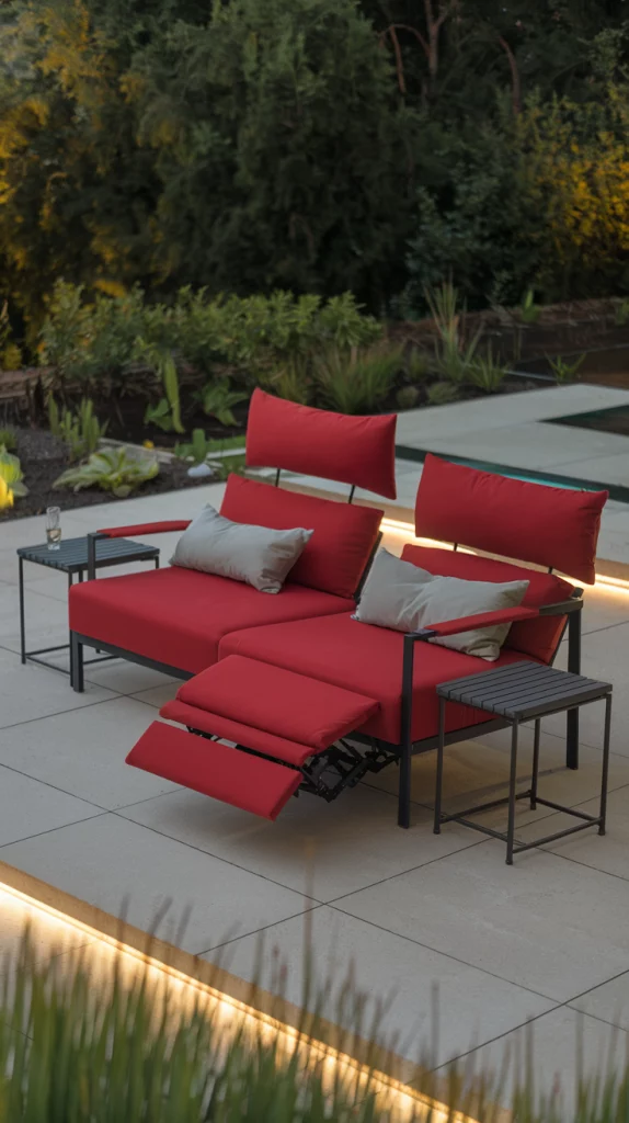 For the ultimate outdoor relaxation experience, opt for outdoor sofas with reclining features. These sofas allow you to adjust the backrest for lounging or sitting upright, making them versatile for any occasion. Add plush, weather-resistant cushions and pair the sofa with side tables and soft lighting to enhance the ambiance.