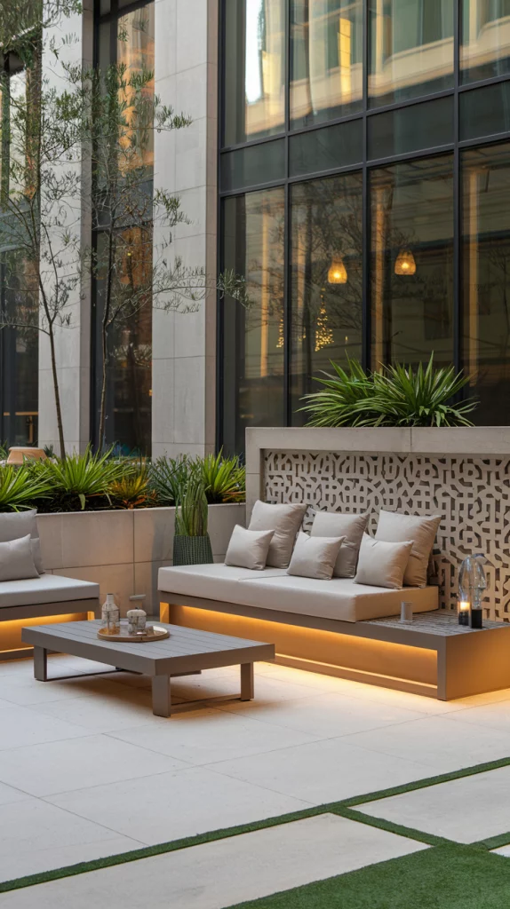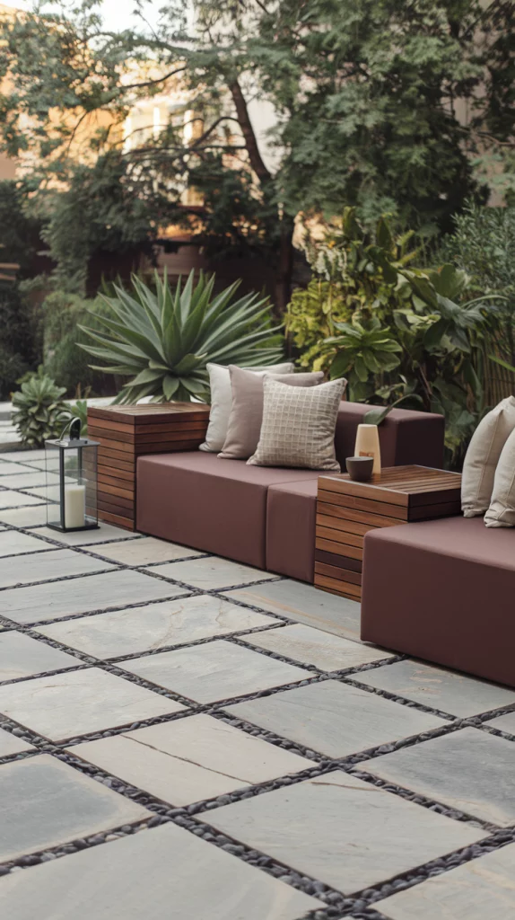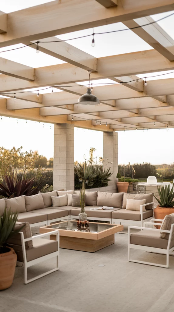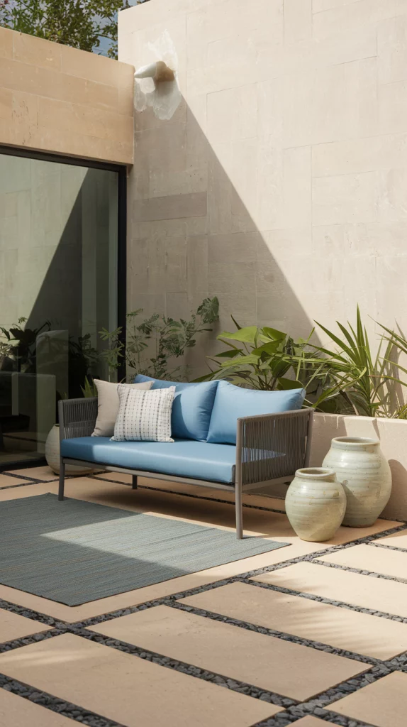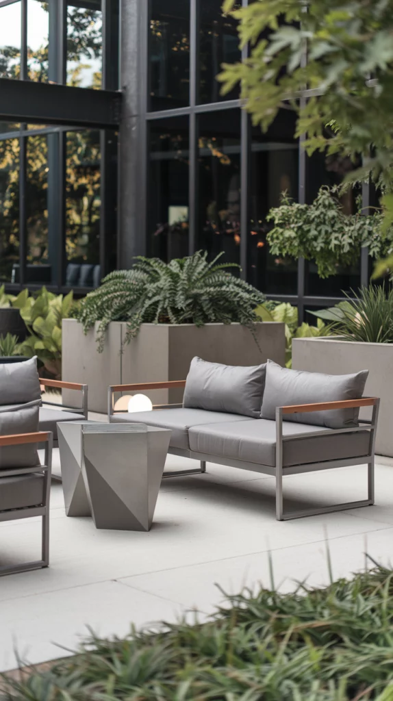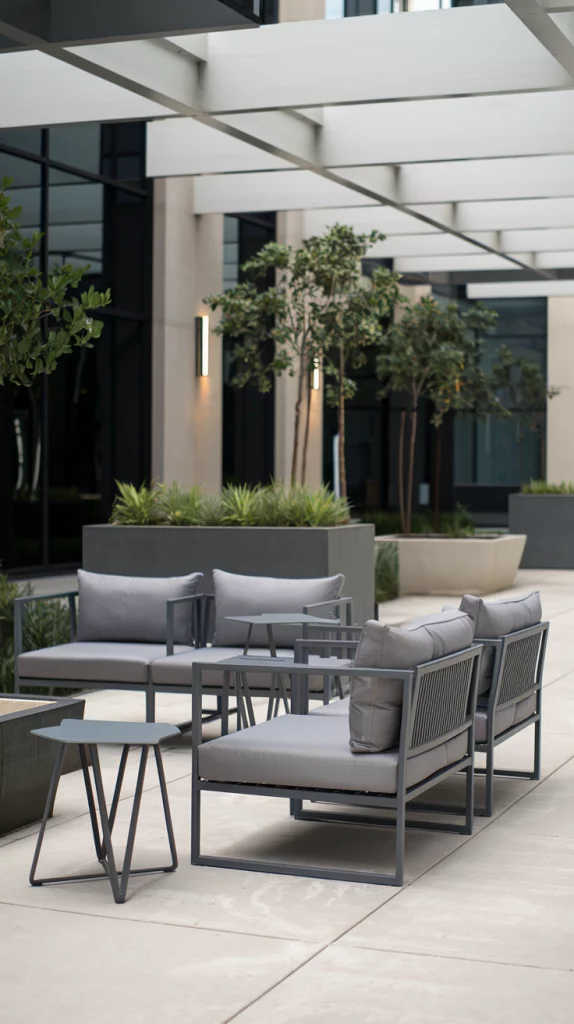 A large patio allows for expansive seating arrangements. Consider outdoor sofa sets that include multiple sections, such as L-shaped or U-shaped configurations. Pair these with a large coffee table or ottoman and accent chairs to create a welcoming space for entertaining guests. Enhance the area with potted plants and layered lighting for a dynamic effect.