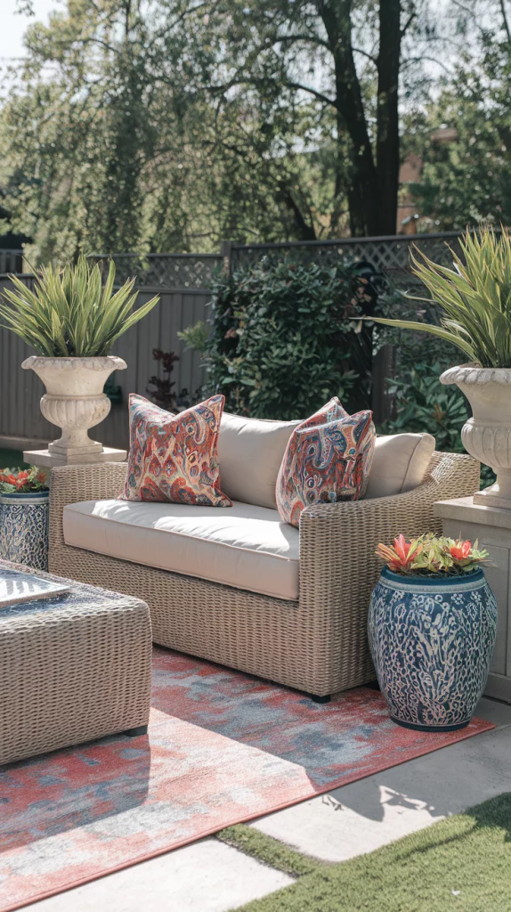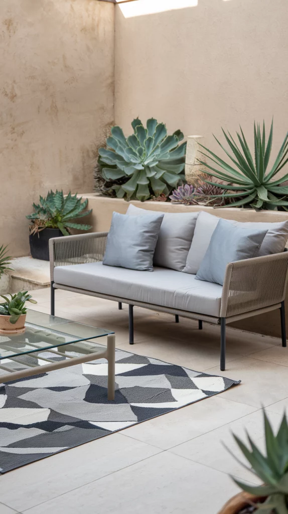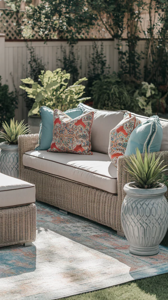 Sectional outdoor sofas are versatile and ideal for dynamic seating arrangements. Look for modular designs that can be reconfigured to fit your space. Pair the sectional with a large outdoor rug, accent tables, and vibrant throw pillows to add personality to the area.