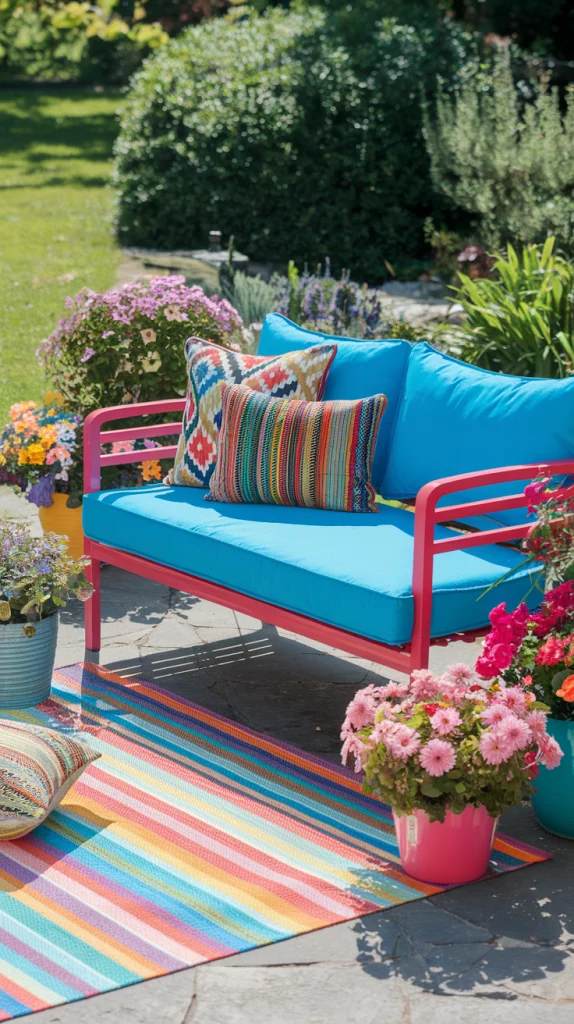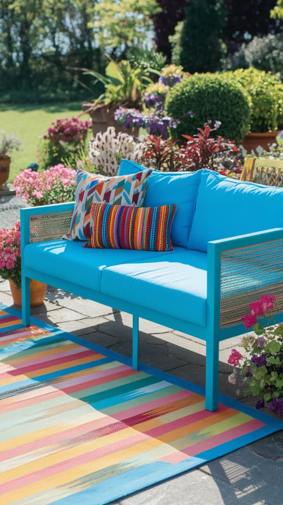 Bright and colorful outdoor sofas can instantly elevate any patio or garden. Choose bold hues like red, blue, or green for the cushions to create a lively atmosphere. Pair the sofa with patterned throw pillows, a colorful outdoor rug, and potted flowers for a cohesive and cheerful design. This look is perfect for those who want a playful and energetic vibe in their outdoor area.