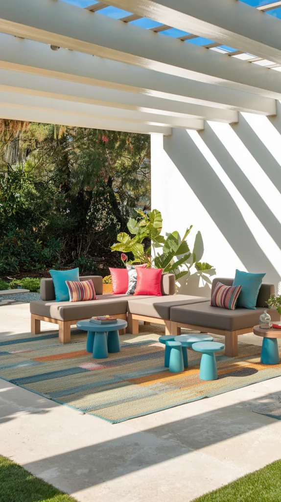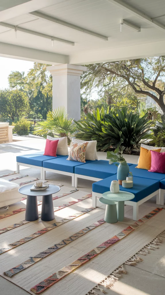 Modular outdoor sofas allow for endless design possibilities. These sofas come with individual sections that can be arranged in various configurations to suit your space. Pair them with a large outdoor rug, versatile accent tables, and vibrant throw pillows for a dynamic and flexible setup.