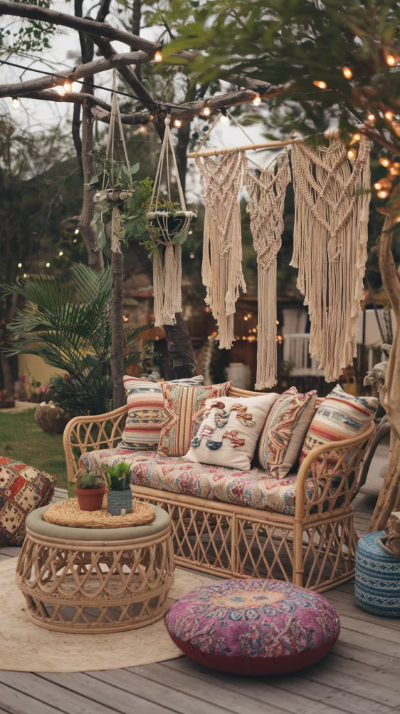 Bohemian outdoor sofas embrace creativity and whimsy with colorful patterns, fringed cushions, and eclectic designs. Look for sofas made from natural materials like rattan or bamboo and accessorize with macramé throws, patterned pillows, and fairy lights. Surround the area with hanging planters or lanterns for a dreamy boho vibe.