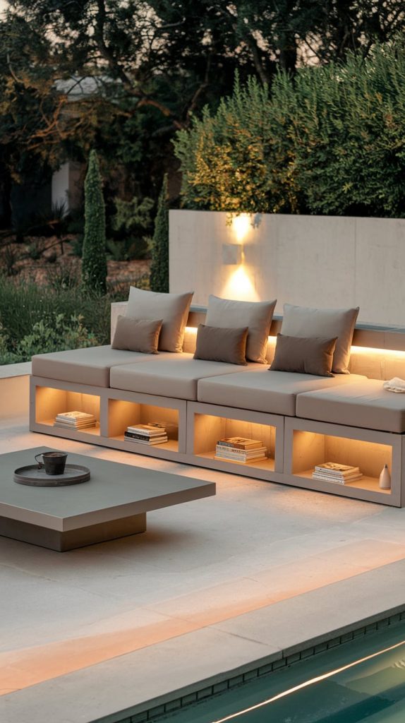 Outdoor sofas with built-in storage are both functional and stylish. These designs offer hidden compartments for storing cushions, blankets, or outdoor accessories, keeping your space tidy. Opt for sleek designs with weather-resistant materials and pair them with a minimalist coffee table and subtle decor for a modern look.