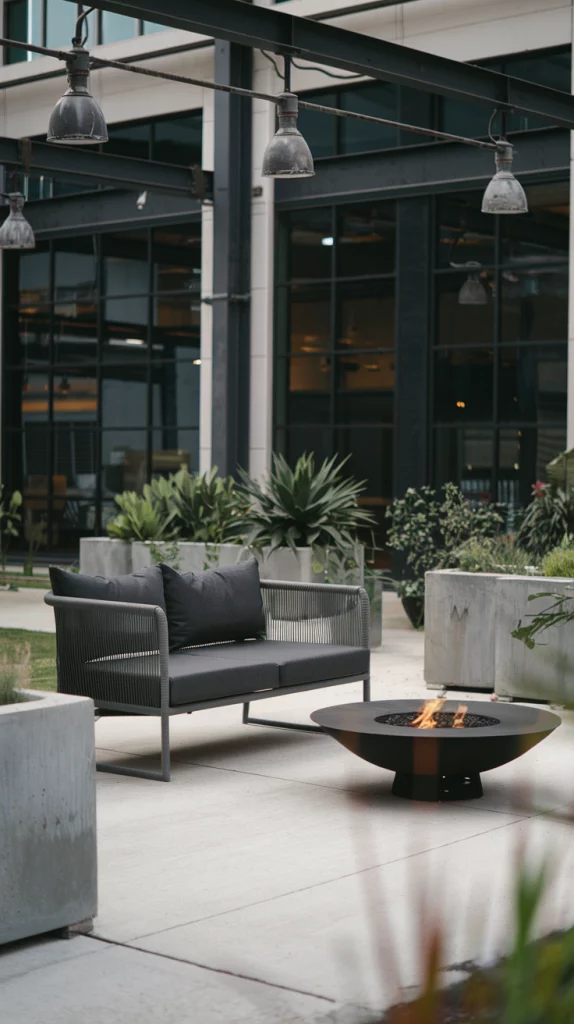 Metal frame outdoor sofas bring a bold, industrial edge to outdoor spaces. Look for designs with powder-coated steel or aluminum frames paired with dark cushions for a sleek and durable look. Complement the sofa with industrial-style lighting, concrete planters, and a minimalist firepit. This design is perfect for those who love clean lines and modern aesthetics.
