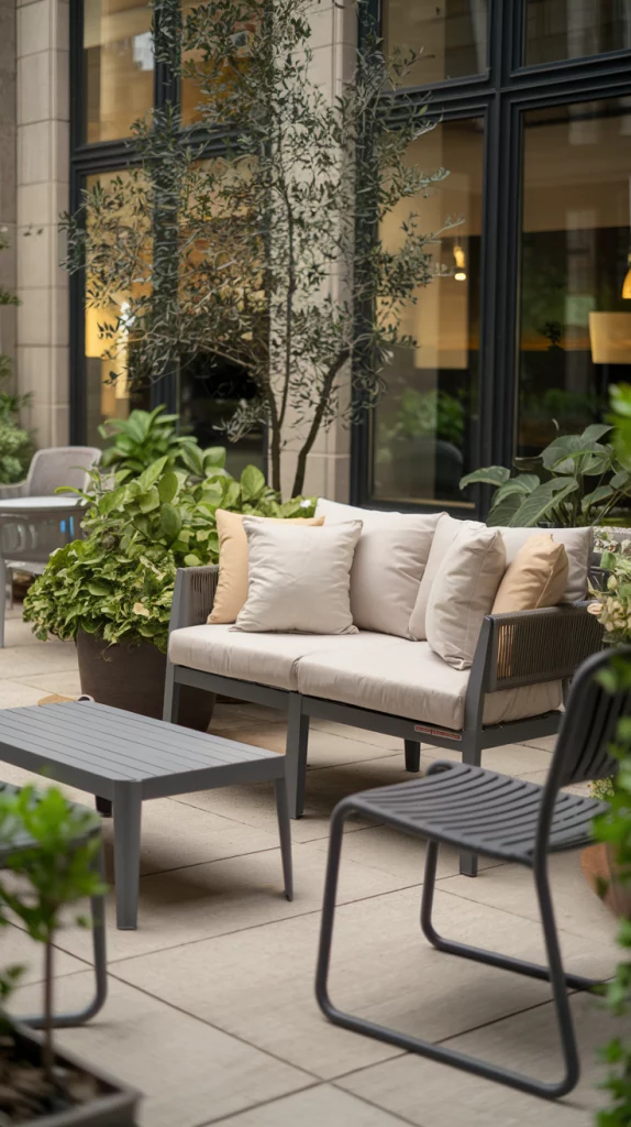 Lightweight aluminum outdoor sofas combine durability with portability. These designs are easy to rearrange, making them ideal for versatile spaces. Opt for sofas with powder-coated aluminum frames and weather-resistant cushions. Enhance the setup with a lightweight coffee table, stackable chairs, and movable decor pieces.