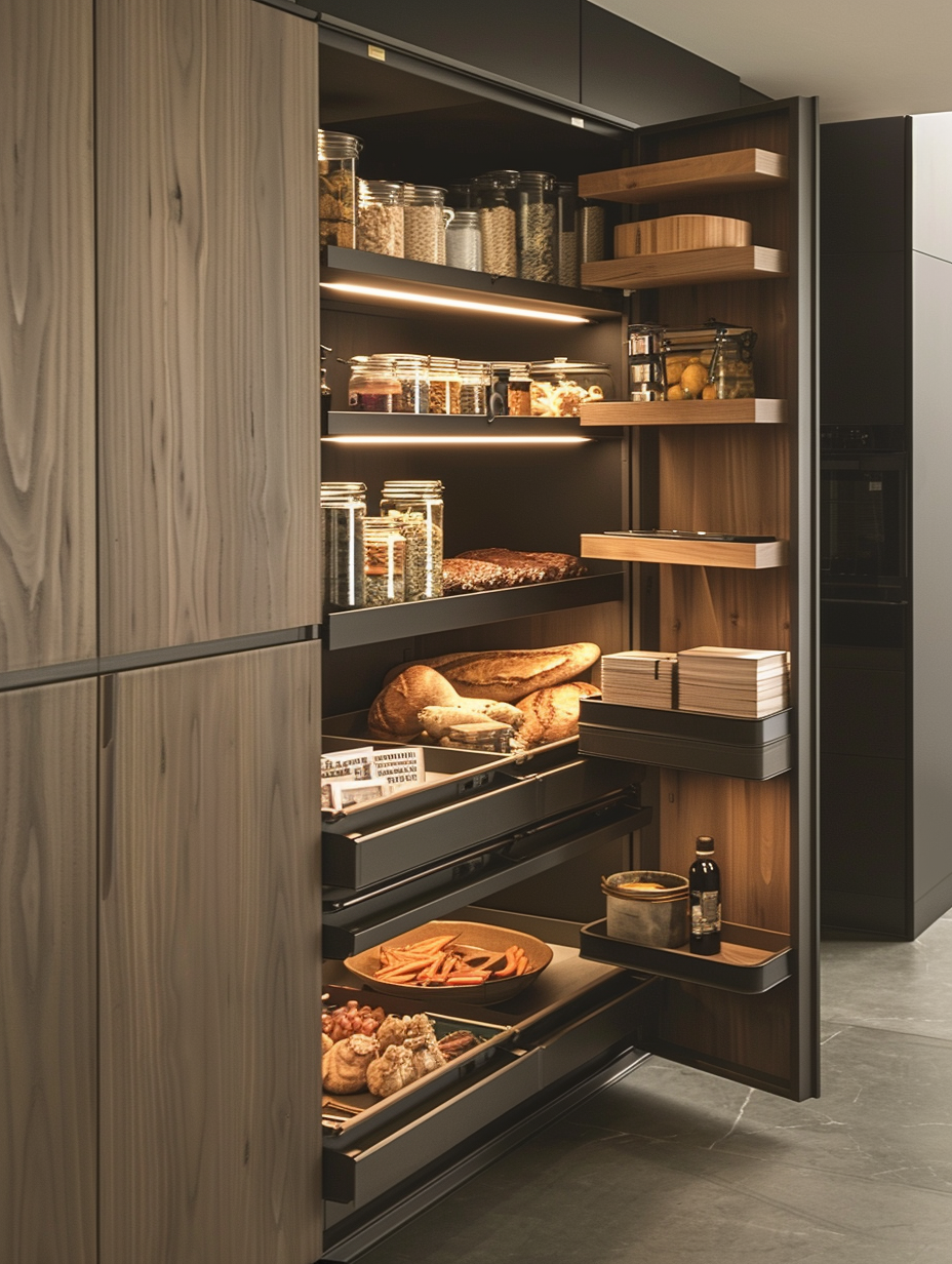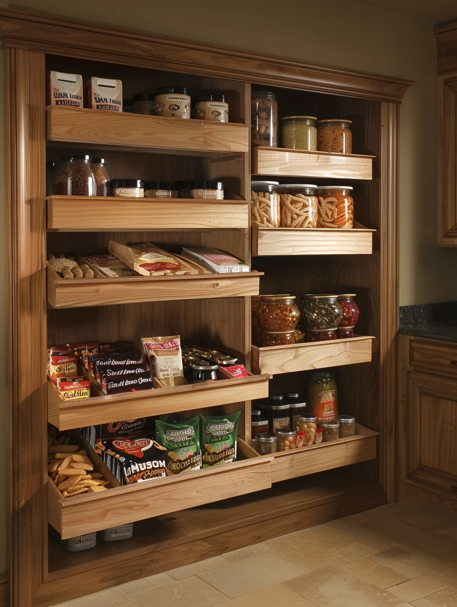 Pull-out shelves are a practical method that you can exploit to the maximum from your pantry. They permit you to comfortably reach things at the back of the shelves while at the same time reducing the mess and allowing the seamless organization to take place.