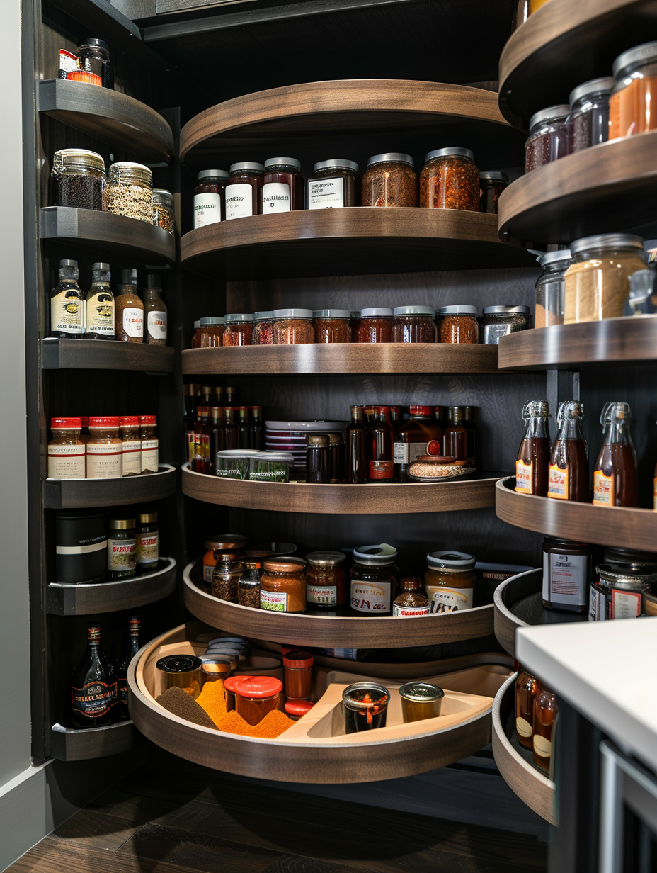 Lazy Susans are the excellent remedy that makes the back of your pantry the easiest to attack by items. This spinning product can easily be mounted on haul-out shelves to put away spices, sauces, and small items. Just give it a spin, so it twists to the side you want, and you do not pare any fingers while reaching through the intensely filled shelves.