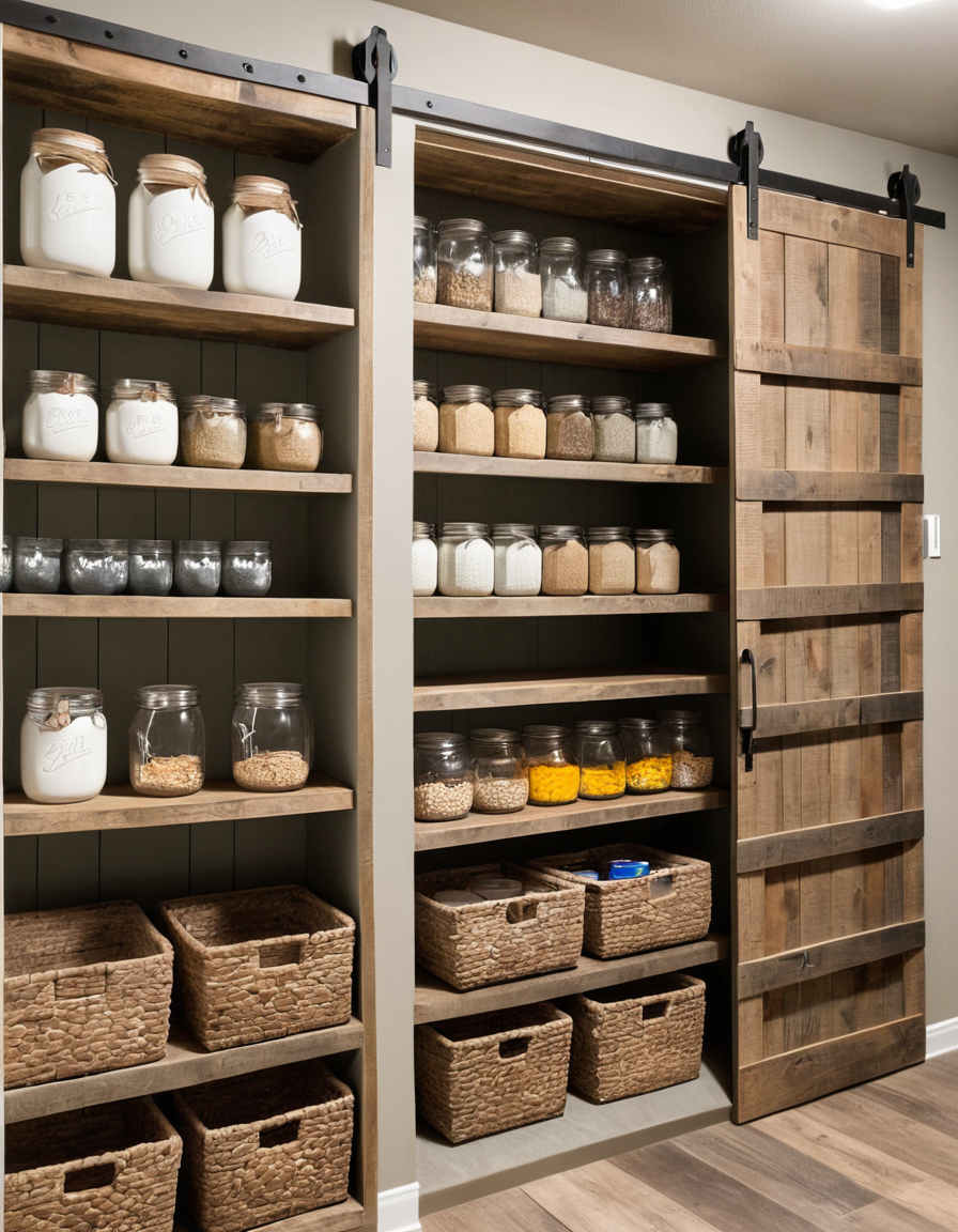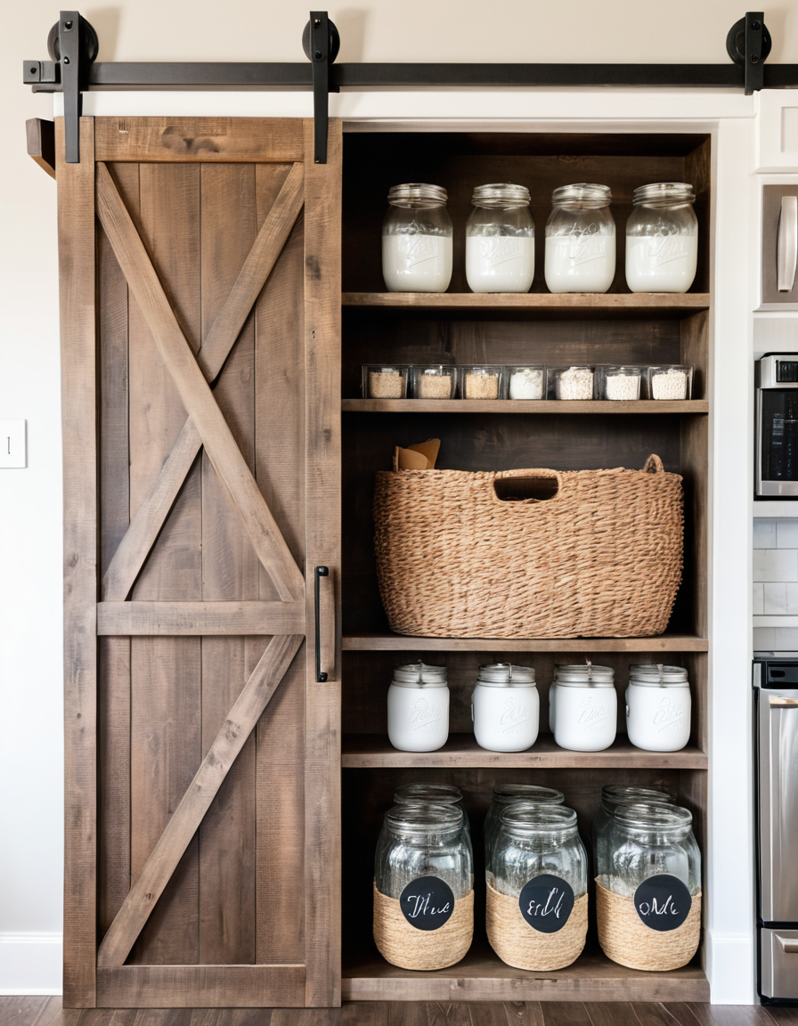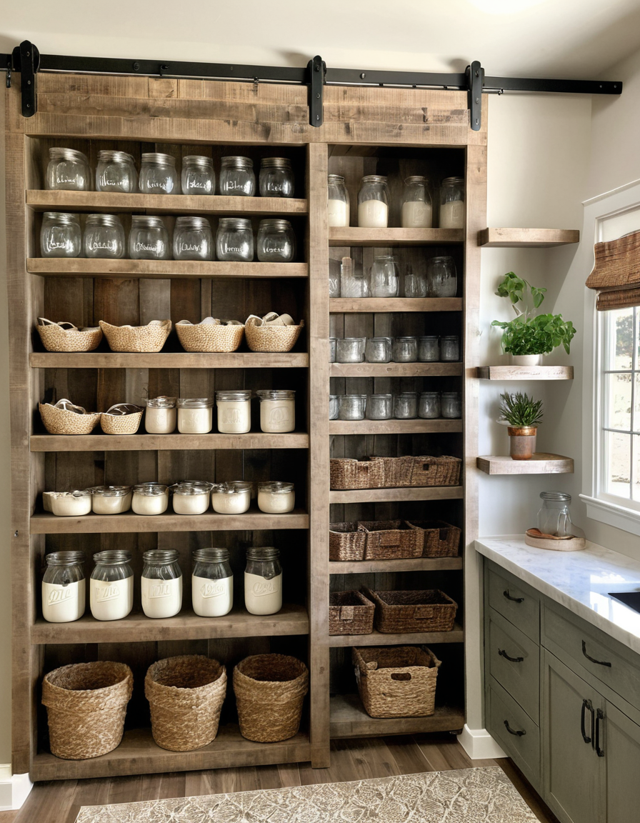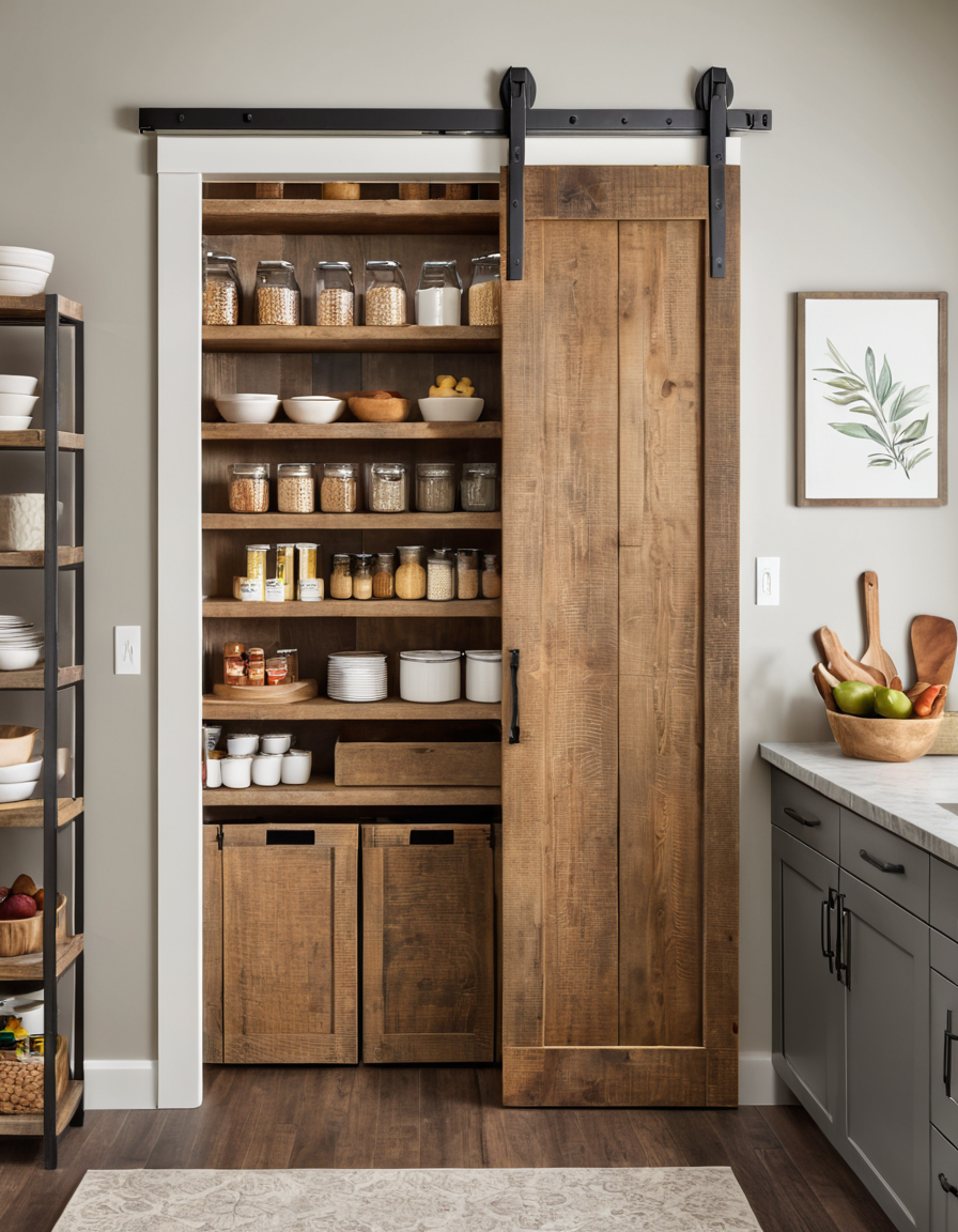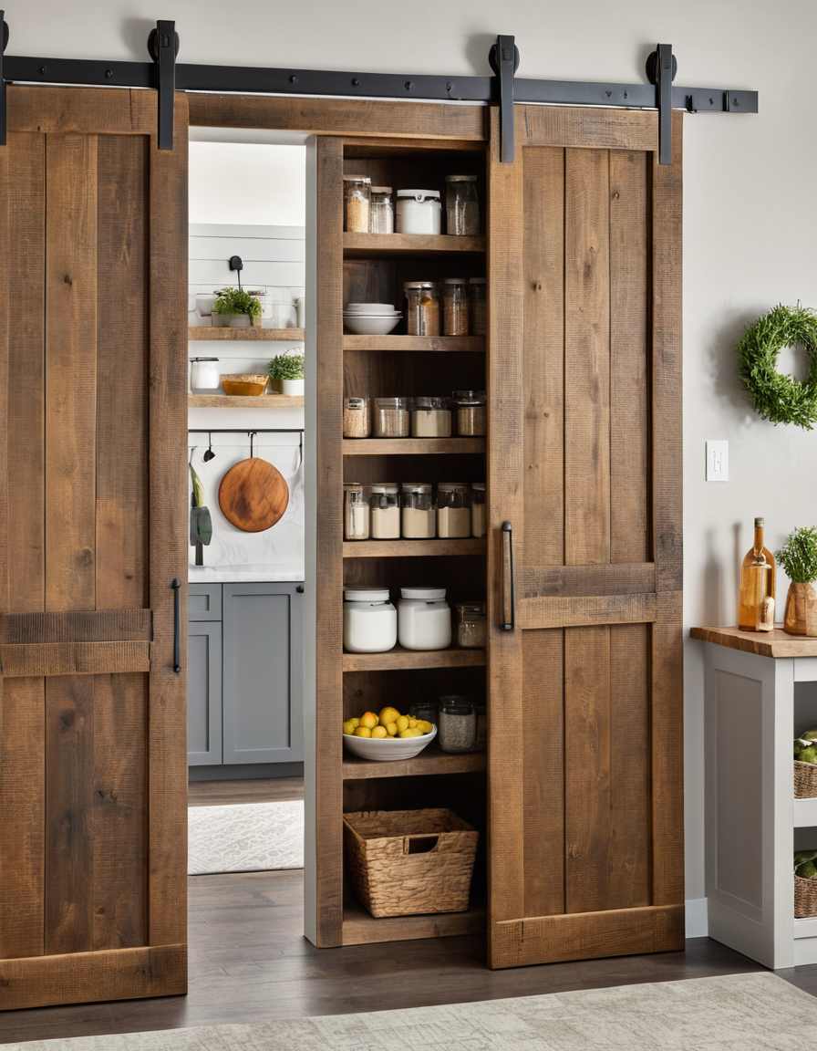 The idea of sliding barn doors is so unique, and you also save more space than with swinging traditional doors making them so useful in your pantry. They can also be put into good use with farm and compact kitchen designs where every inch is valuable. Opt for a door style that blends in with the décor theme of the entire kitchen whether it is weathered wood for an antique look or a more refined finish for a modern farmhouse look. Sliding barn doors are enhancing the appearance of the pantry: they are easy to reach and compactly utilized without consuming more space.