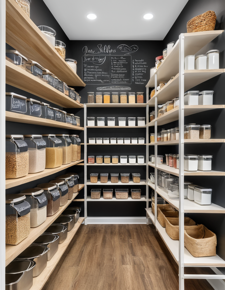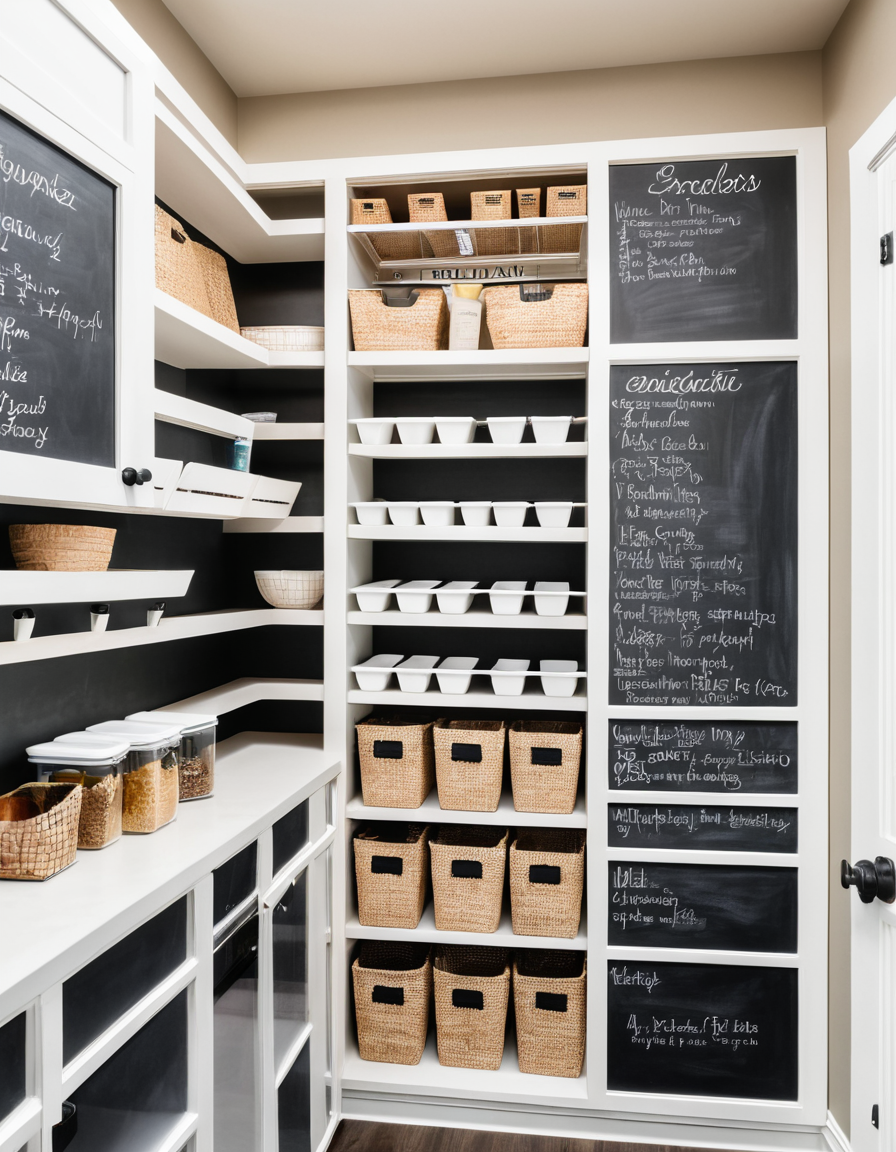 A chalkboard wall used as a grocery list, meal plan, or family notes keeping tool in your pantry is not just functional but also chic. This feature is not only functional but also adds a unique design element to the space. Use the chalkboard wall to scribble things you need to buy or else communicate with your family members. Not only is the message board practical, but it also gives a totally different, lively, or hand on feeling that it is a must-have in any pantry, be it large or small, shared or private.