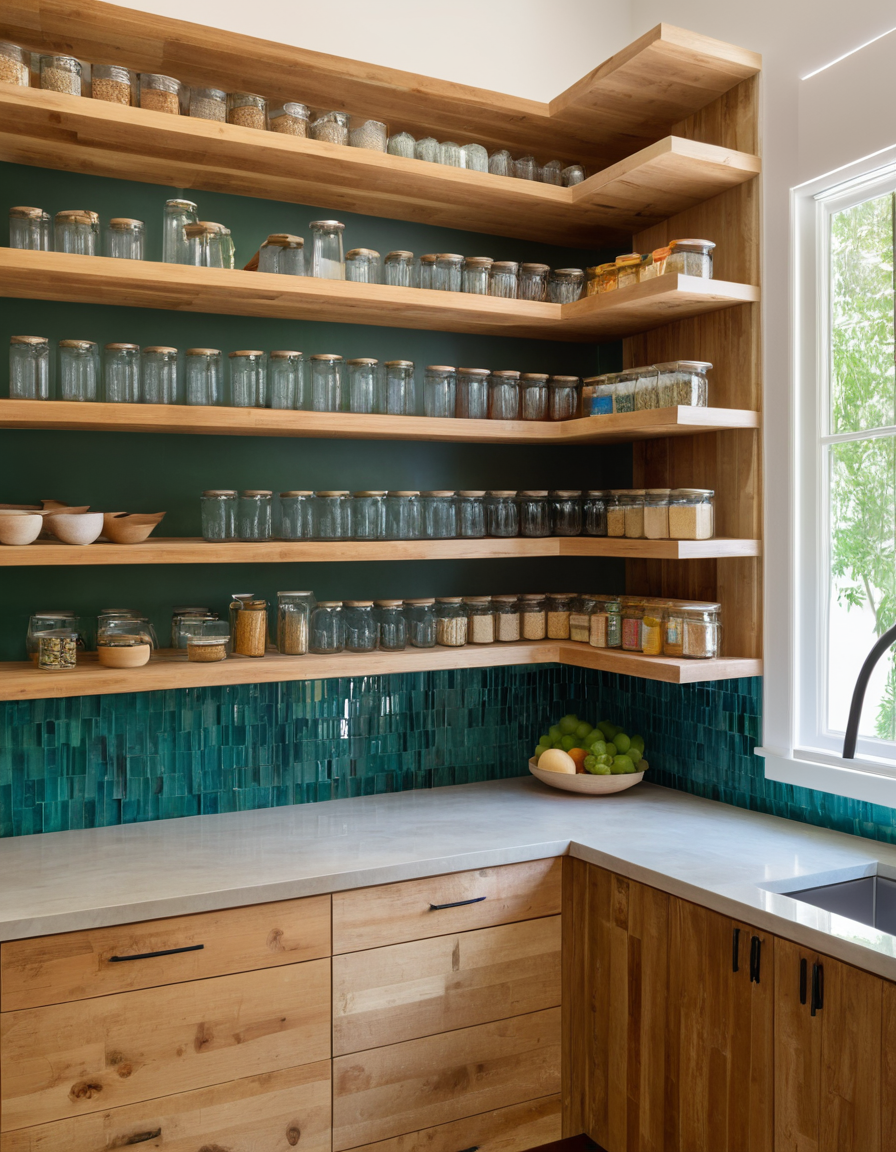 One wonderful thing about incorporating environmentally friendly items in the pantry’s design is demonstrating your care for the environment while at the same time creating a warm and natural feeling in the area. Use eco-friendly materials such as bamboo for shelving, recycled wood for cabinetry, and recycled glass for countertops. You may opt for non-toxic paints and finishes so that the storing of your food is done in an eco-friendly way. An eco-friendly pantry is both fashionable and ethical. It blends the function with the care for the environment. This design is a perfect fit for anyone who wants to build a green sustainable home.