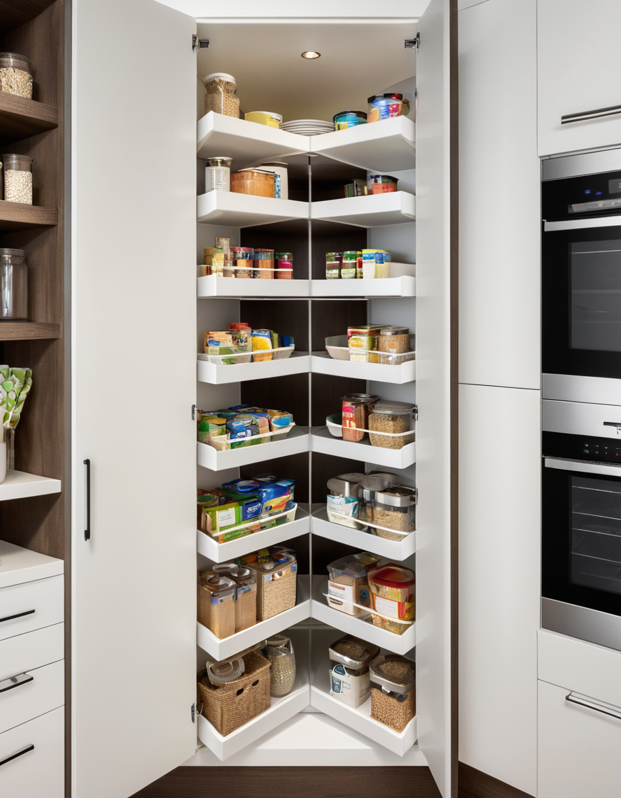 Often, there are corners within pantries that are hardly used at all. But with a proper design, these corners can be used extremely efficiently. Mount rotating shelves or a corner nightstand with pull-out drawers to achieve the best through these weird places. An alternative solution is to use corner cabinets while corner shelves come out. This will enable you to access items that are at the back of the shelves more easily. In a small kitchen, every inch is essential to success, so effectively utilizing corner spaces can greatly improve your storage capacity.