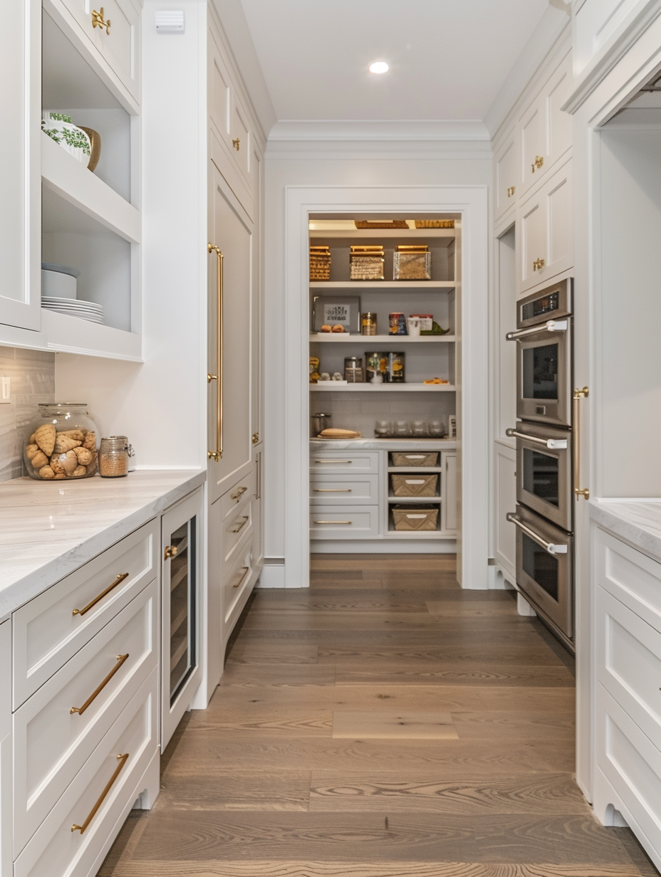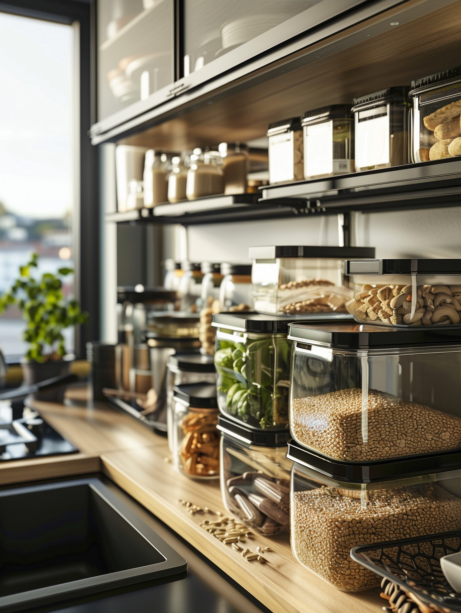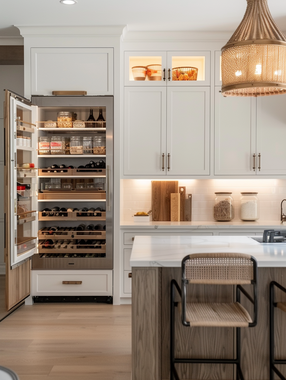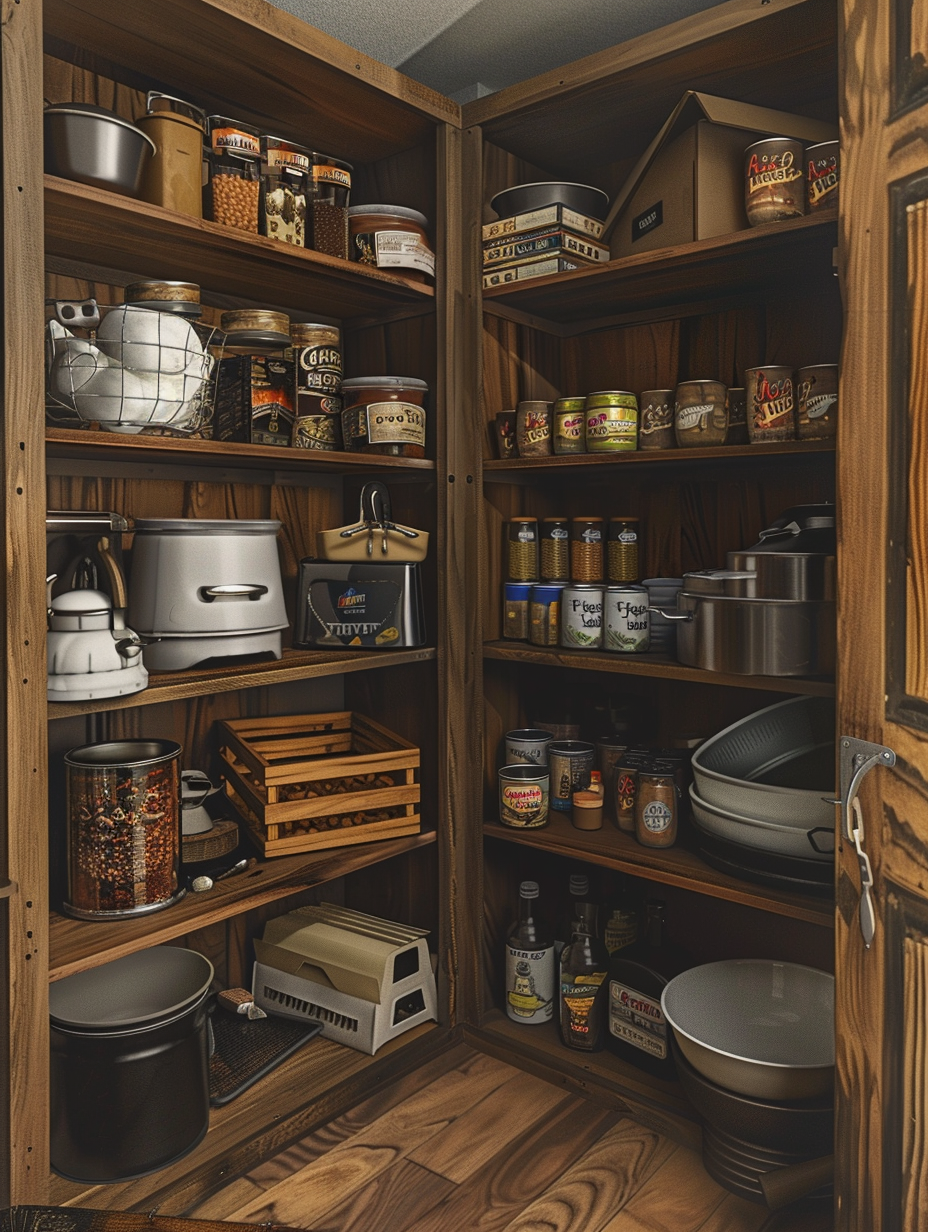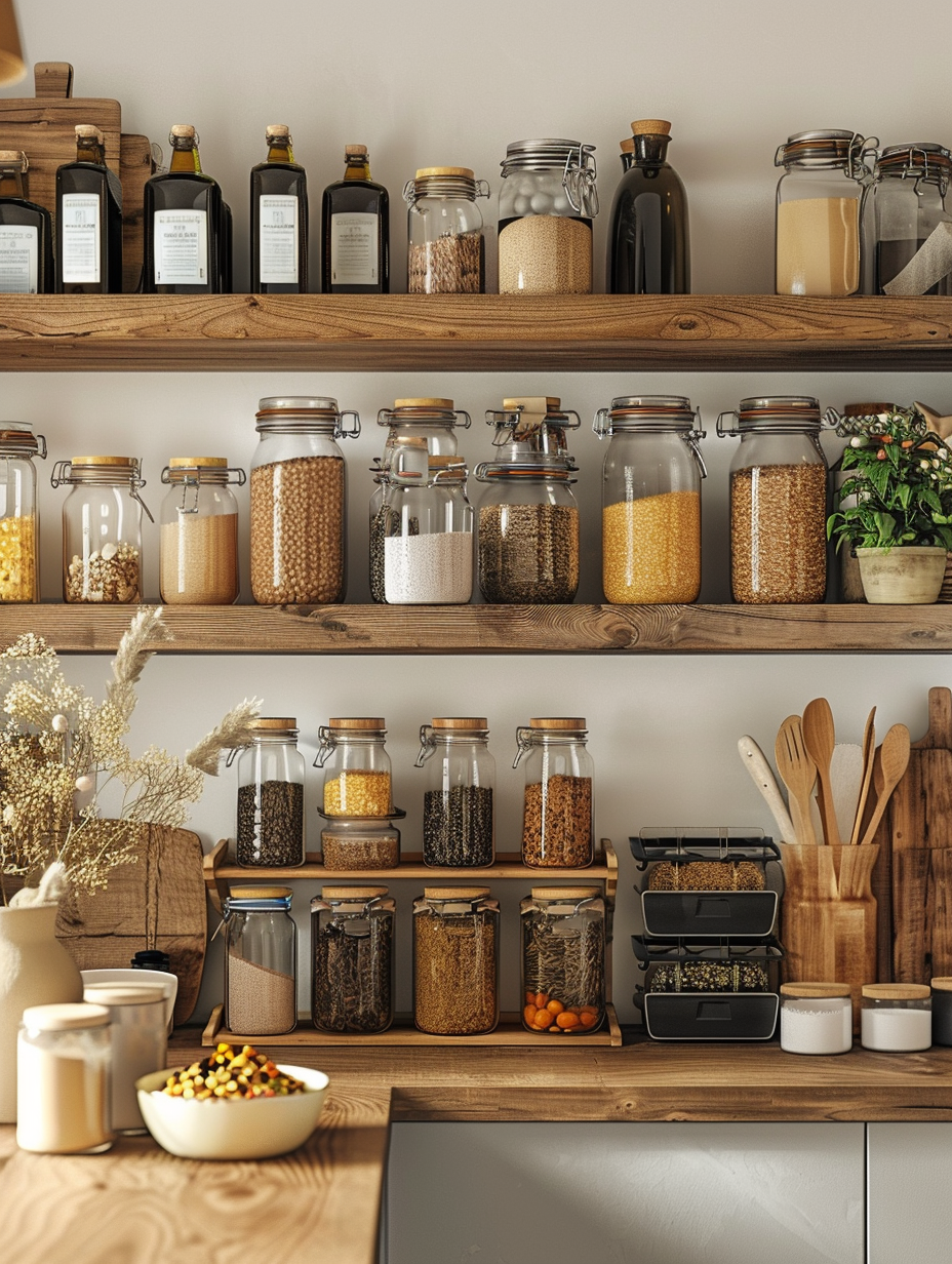 Concealed pantry shelves present a neat and discreet method of storage. Mount pull-out shelves to be hidden behind cabinet doors or use sliding panels to discretely put away your pantry stock. This technique allows your kitchen to be shiny and organized with no visible mess and a simple path to cupboard essentials.