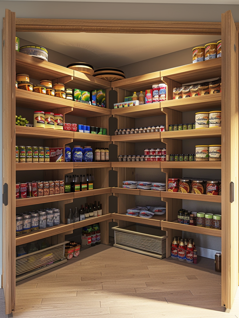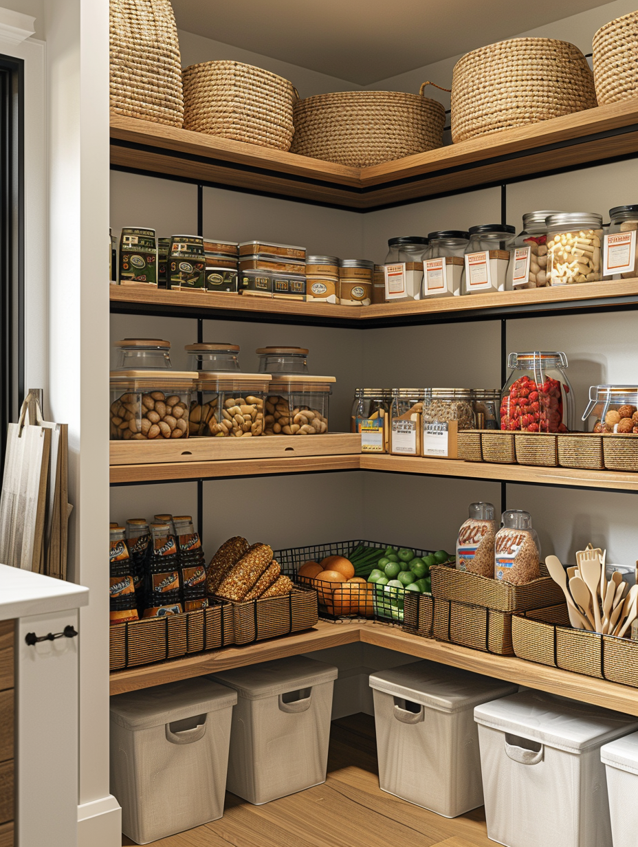Corner shelving is an amazing technique to maximize every single centimeter of your pantry. Have problem-solving shelves that are a little tight in corners which gives extra space to most of the hard-to-store items. These shelves can be boxes of food, small kitchen appliances, which can be grouped together and they will all add up to the pantry’s organization.