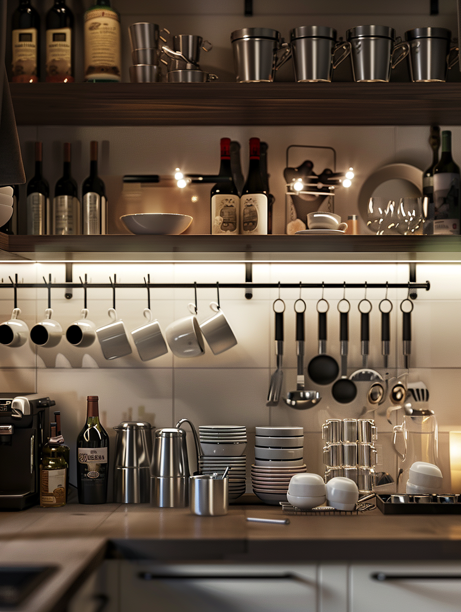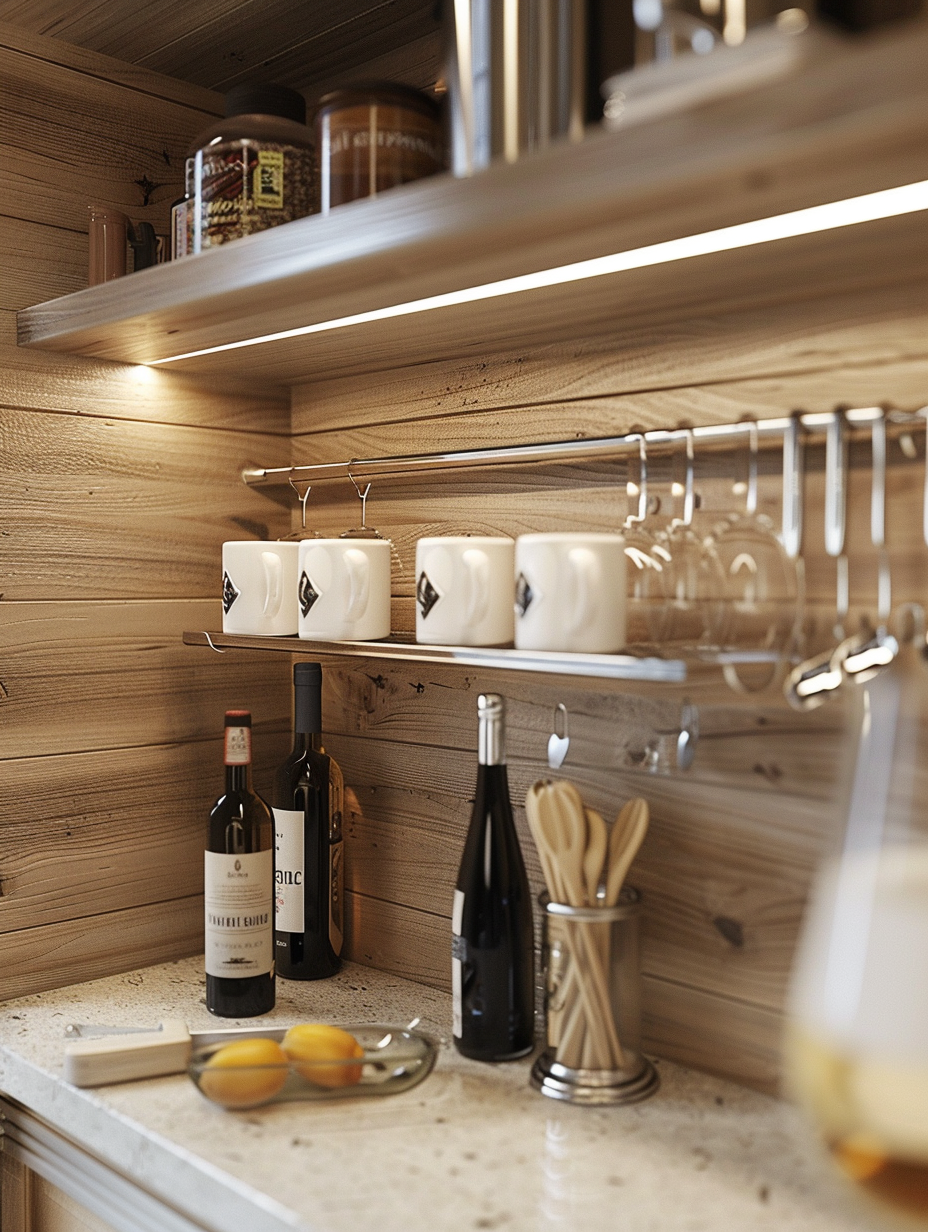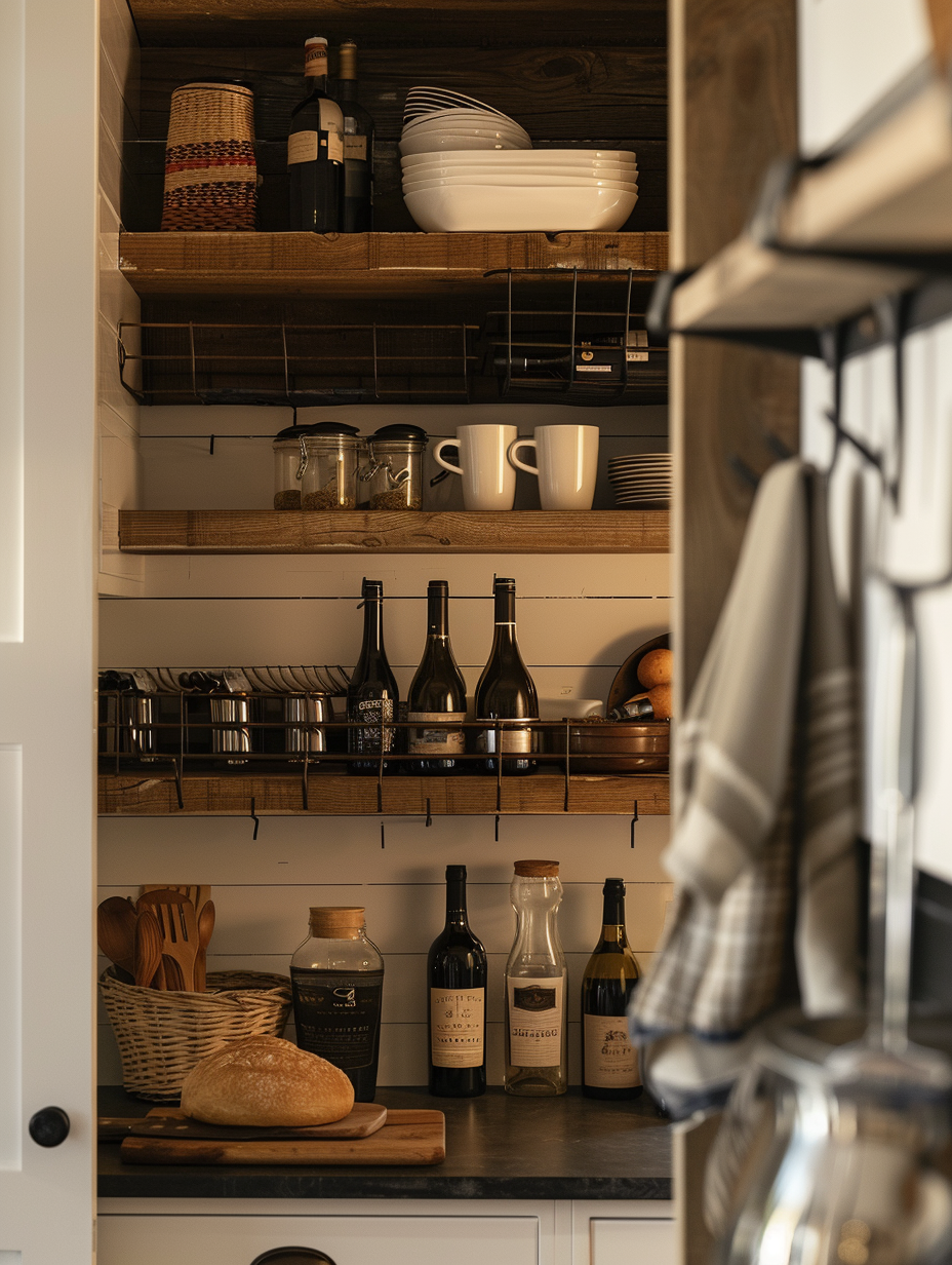 Pantry storage can be fully utilized by attaching some under-shelf storage accessories. Mugs, utensils, or wine bottles can be stored underneath the existing shelves by using racks or hooks. Efficient utilization of such a space will keep your pantry neat and free of any mess at all times.