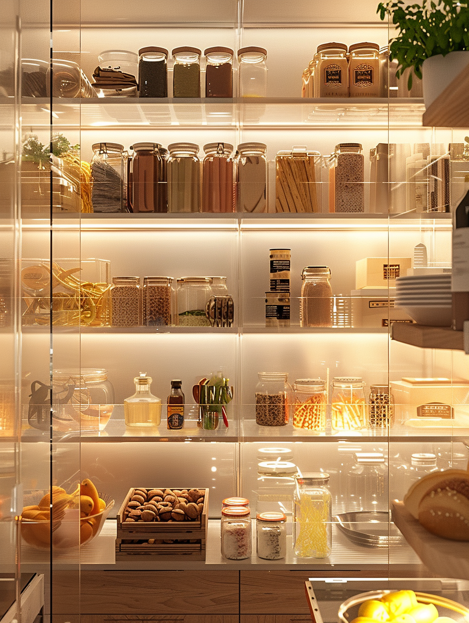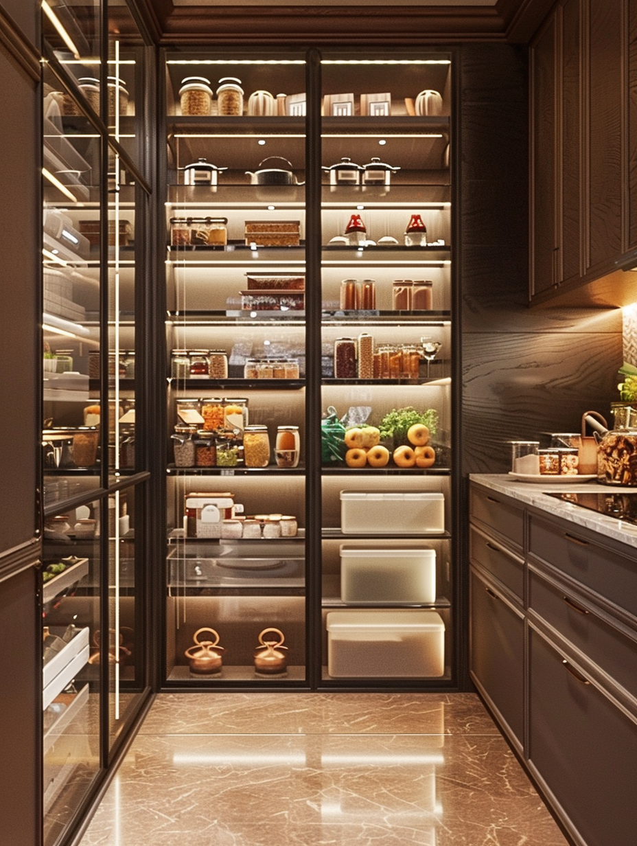 Your pantry’s open and airy feel comes from transparent shelving. Acrylic or glass, the materials that create these shelves, allow you to see through them which, in turn, makes the space look larger and more organized. Invisible shelves are the best choice for modern kitchens providing the difference of being both functional and sleek looking of transparent glass.