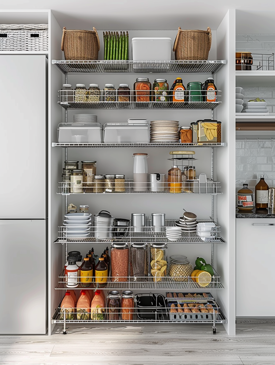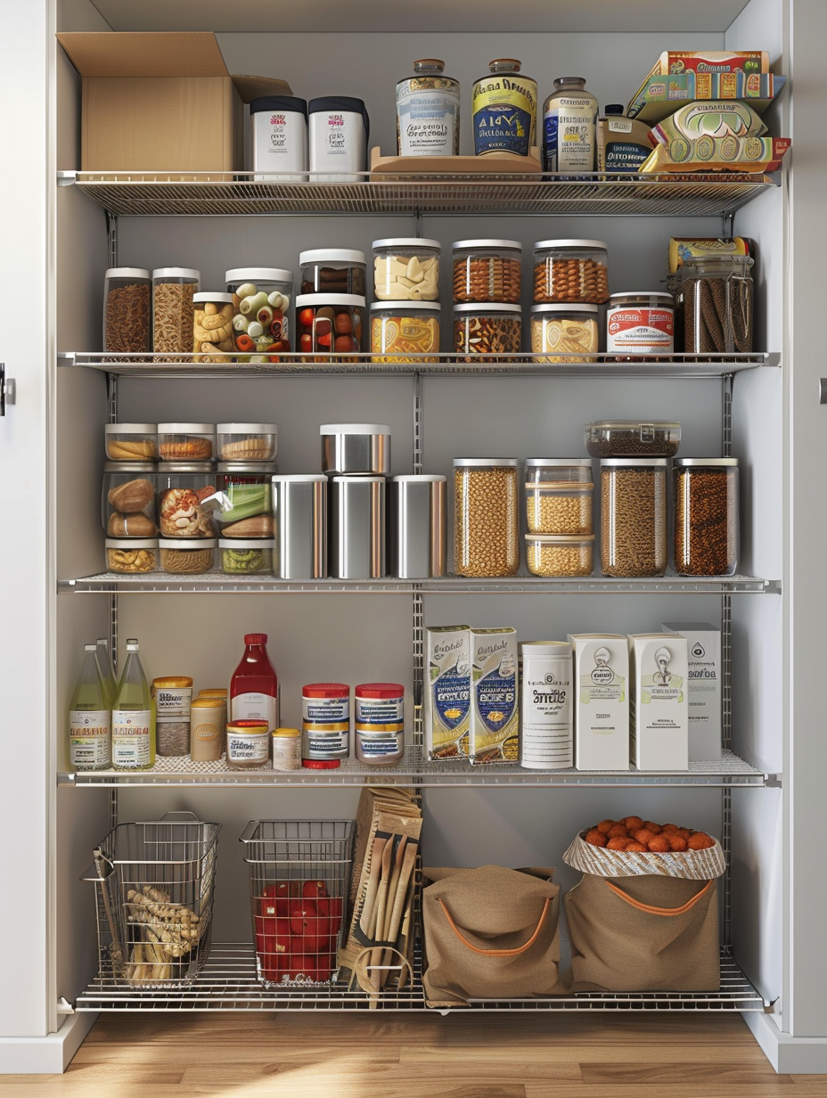 Customizing your pantry layout to match your evolving needs is possible with adjustable shelving. These shelves are indeed multifaceted as they can be easily rearranged at innumerable heights to occupy items in different mass. This versatility will keep your pantry ordered and allow you to one spot for each item.