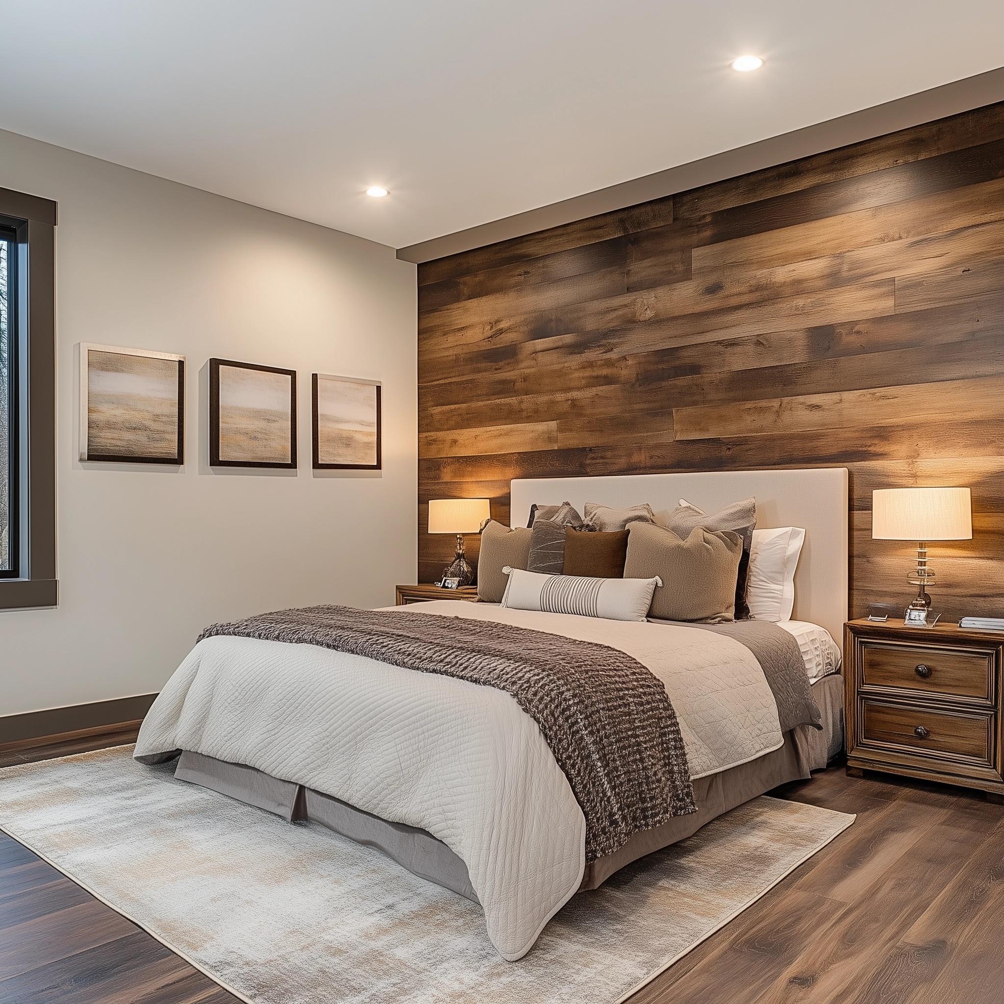 Plank flooring isn’t just a flooring material but also can be used on walls to create an accent wall that has a 3D effect and has got great advantages to space. For the living room, the bedroom, even in the bathroom, you use the wood-paneled wall to give that airiness of indoors. When you lay plank flooring on the wall, select a finish that contradicts or complements the floor thereby not overwhelming the room.