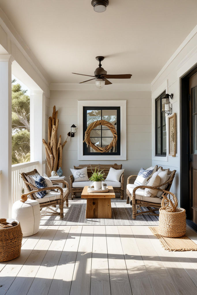 Do you wish to turn your outdoor area into a lively seaside escape? In this article, modern nautical decor and designer touches that reinvent coastal porches are examined. Learn how your porch design can be elevated with unique elements such as seashell chairs, sea corals, and driftwood sculptures. Continue reading to gain expert knowledge and visual inspiration that merges functionality with creativity.