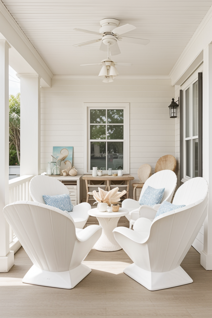 Seashell-inspired furnitures suit coastal porches because it captures nature’s beauty alongside modern sophistication. The furniture’s advanced curves and distinct form encapsulate seating and tables, thus making them prominent features of nautical decor. Its stylish design and designer craftsmanship make it perfect for a classy yet laid-back coastal getaway.
