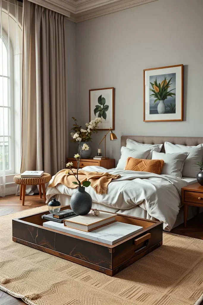 One of the remarkable characteristics of quiet luxury is its commitment to curation and not to accumulation. When I am going to create bedrooms of this type, I am very choosy in making a little number of objects as delcor but they should all be having a purpose. This makes the room not busy in any way but still gives it personality.