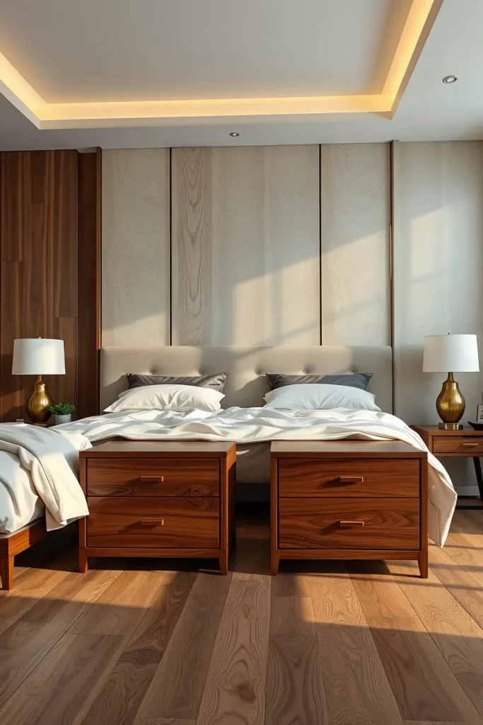 They are small furnishings, and on a modest scale; yet in a quiet luxury bedroom, nightstands bear a heavy visual and structural load. My nightstands should be solid wood made of oak, walnut or ash with internet metal. These artworks stabilize the bed zone and tribute the principles of originality and artisanship.