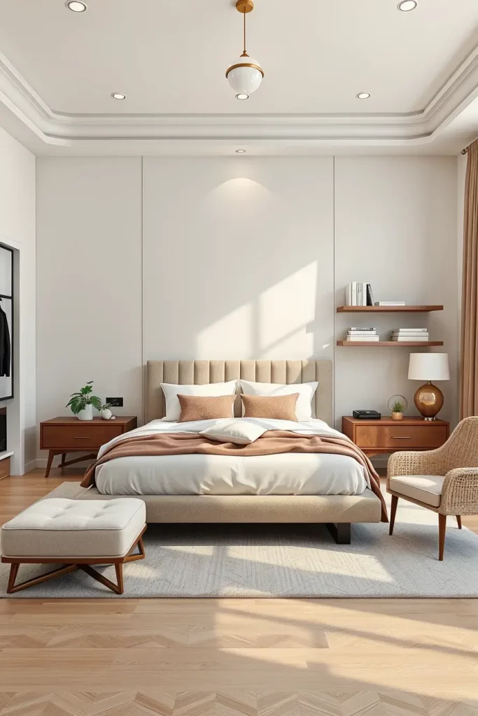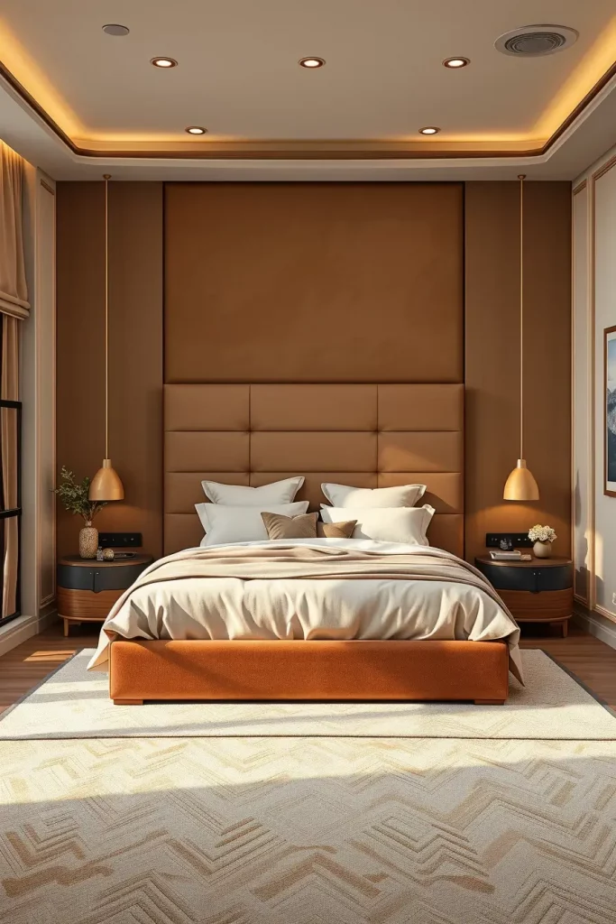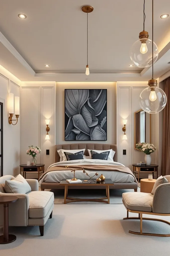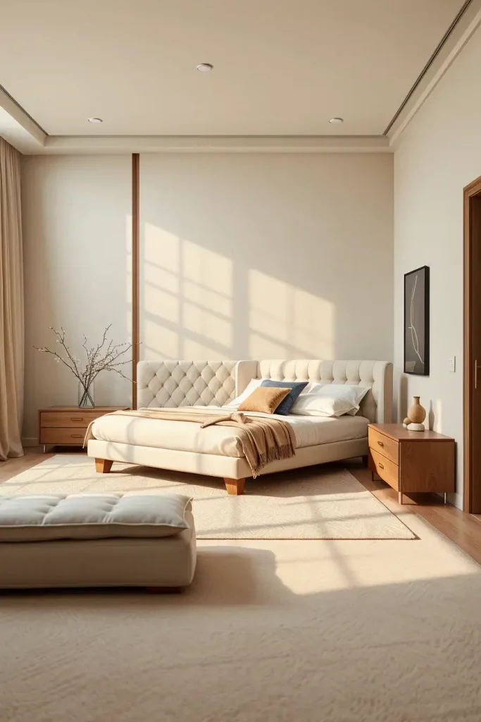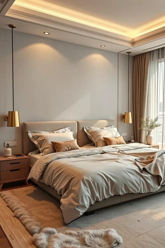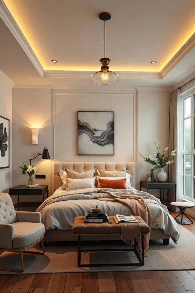 I choose furniture, which has clean lines and soft finishing. One of the elements of my style is a low upholstered bed with a custom headboard, sleek nightstands featuring concealed drawers, and neutral carpets with a slight texture. I do not like tall, standing dressers; I utilize under-bed storage or custom closets to keep the places clean. Instead of table lamps, lighting also consists of sconces or hanging pendants that preserve more space and enhance appearance.