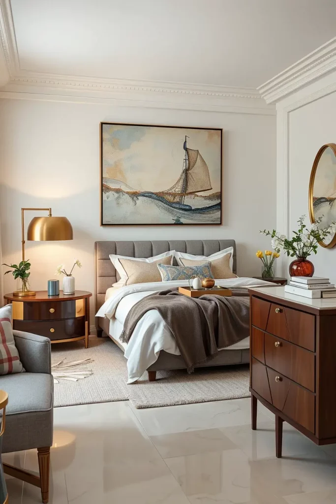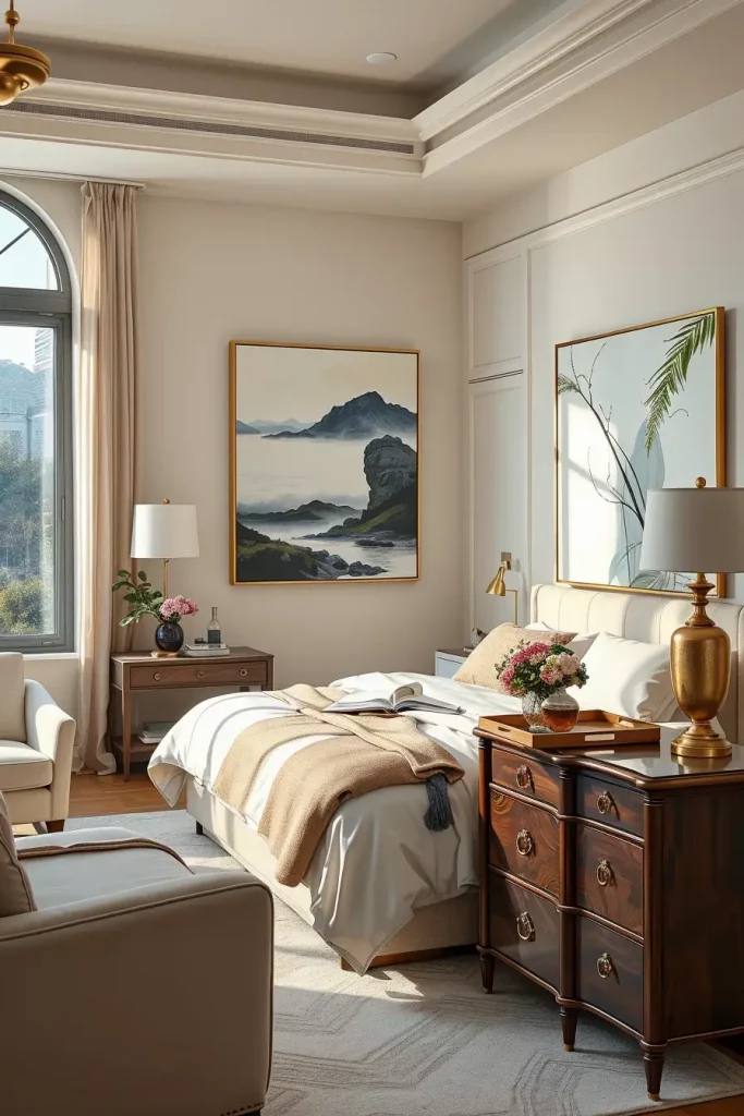 Everything must have a purpose of being there. I do not use fashionable design or a lot of overlapping. Instead, I will pile cashmere blanket over fresh duvet cover, a single ceramic bowl on a dresser, and a huge canvas artwork in washed tones. The furniture, the fabric and the ornaments are all in tune and in scale with each other. There is no loud thing, but everything adds to the sophisticated atmosphere.
