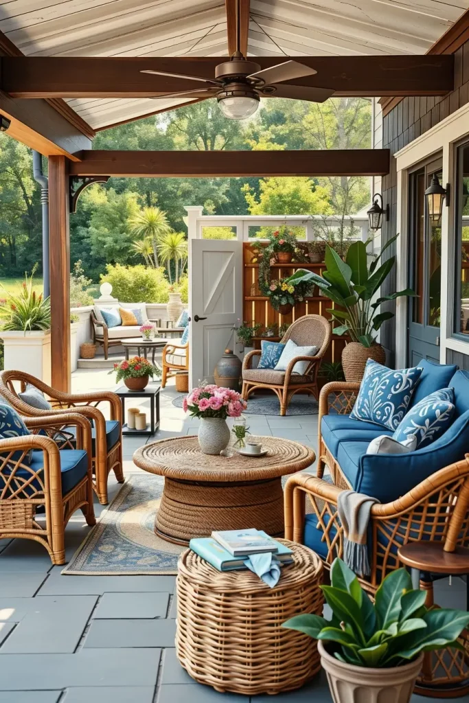 A final touch in this section might be a rattan trunk or a vintage-style storage chest. It gives you storage space, but still makes sure your patio looks well-planned and connected to the rest of the yard.