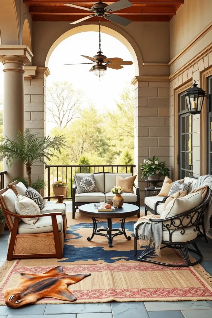 Using multiple textures is very important in such cases. Architectural Digest explains that the design in Ralph Lauren’s Colorado ranch greatly impacts his outdoor goods, bringing together buffalo plaid, leather and neutral fabrics. In patios such textures create an atmosphere of laid-back elegance that is still inviting.