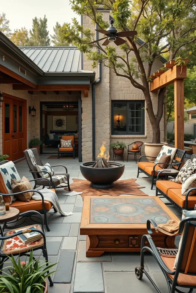 I usually add leather-upholstered chairs, cowhide throw pillows over iron benches and earth-toned ceramic plant containers. Saddle-style stitching and conchos give the bag some special touches. Adding a low metal-accented fire pit with natural stone walls can really finish the environment if there’s enough room. Choose oak, aged metal and rawhide for your furniture to recreate a real western theme elegantly.