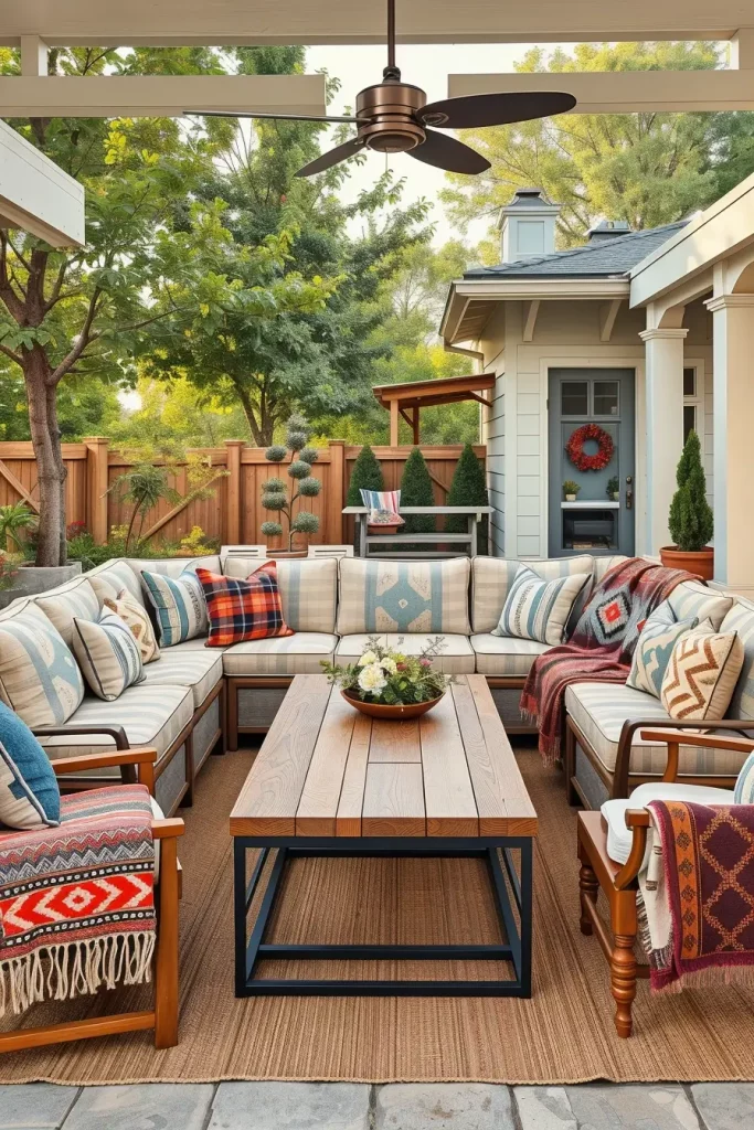 This kind of arrangement gives a patio its own character. A client of mine used to switch up their accessories four times per year and their home went suddenly from plain to full of character. Even small changes—like changing the table runner or switching out planters—can reinvigorate a patio’s personality. According to Southern Living, using seasonal outdoor decorations makes our outdoor spaces feel special and interesting through the different times of year.
