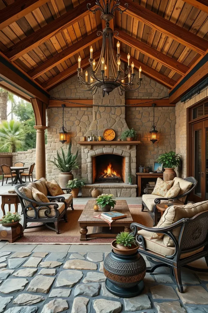 What would make this look even better? In my opinion, either leather poufs made for the outdoors will add to the rustic feel or a display of mounted antlers above your fireplace will help in stressing the local influence.