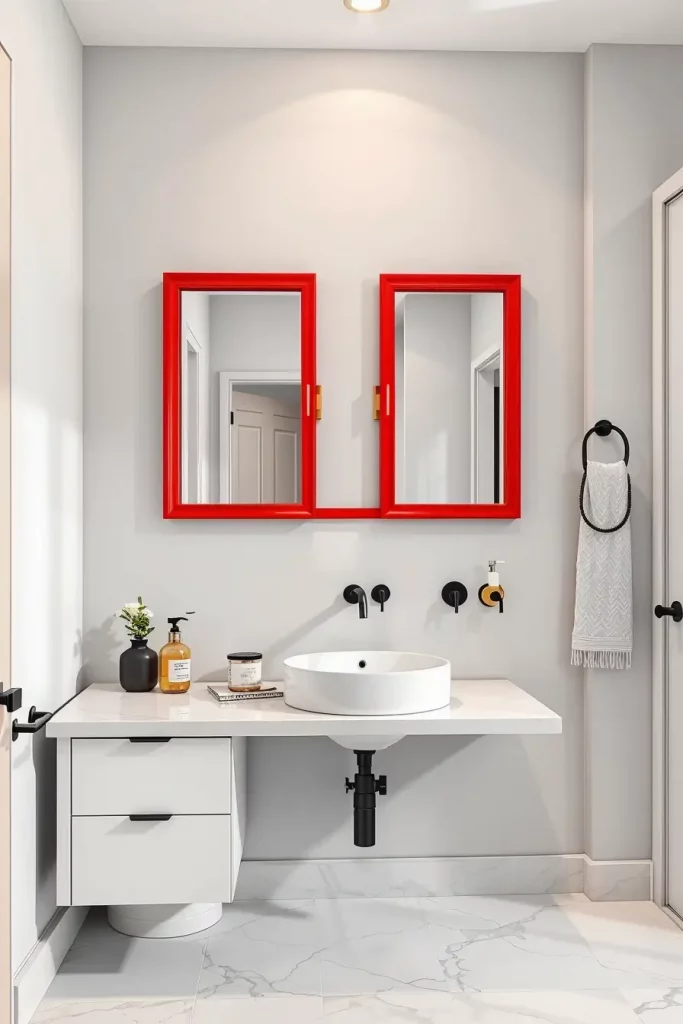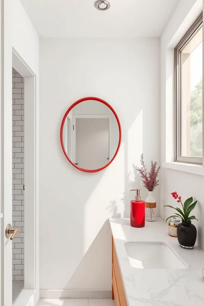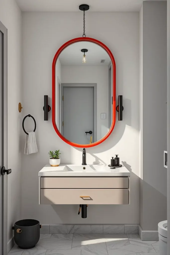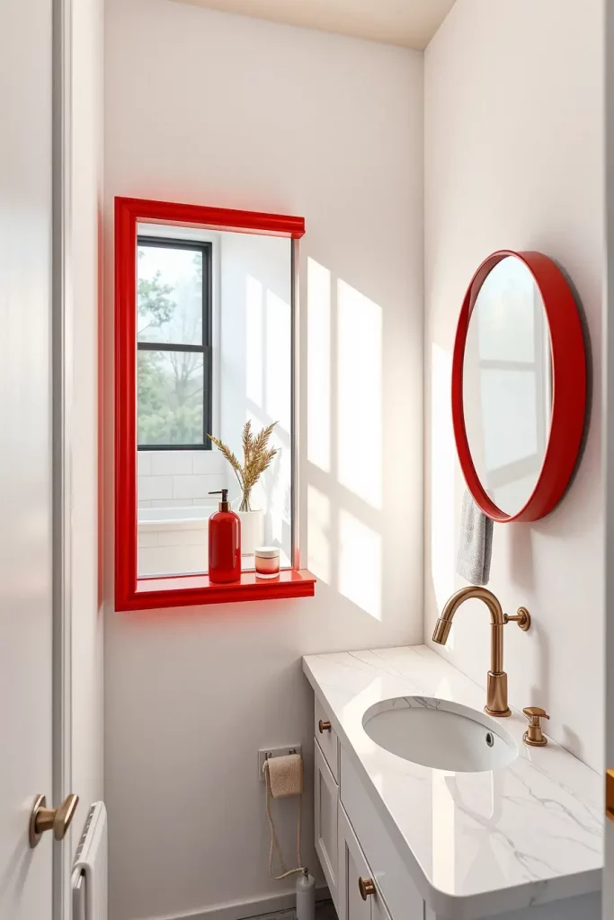 My personal experience will, of course, mention a red-framed mirror as a great compromise between a red fanatic and those who do not want to make such a definitive statement. It gives some personality and a designer touch with comparatively modest investment. In a new profile in Domino Magazine, the accent mirror was the centerpiece of these bathrooms and, actually, red was a favorite.