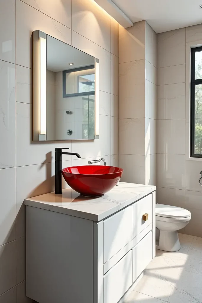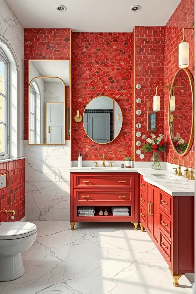 64 Red Accents in the Bathroom: Stunning Ideas to Transform Your Space