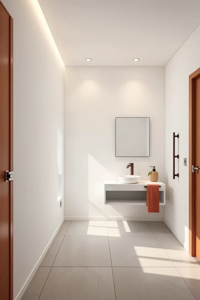 I usually suggest sleek, geometric fixtures made in matte red or lacquer finishes. These go very well with floating vanity, frameless mirror, and linear LED lighting. The comparison of red and neutral shades sharpens the lines and the plainness of the minimalist design and introduces another dimension of visual appeal.