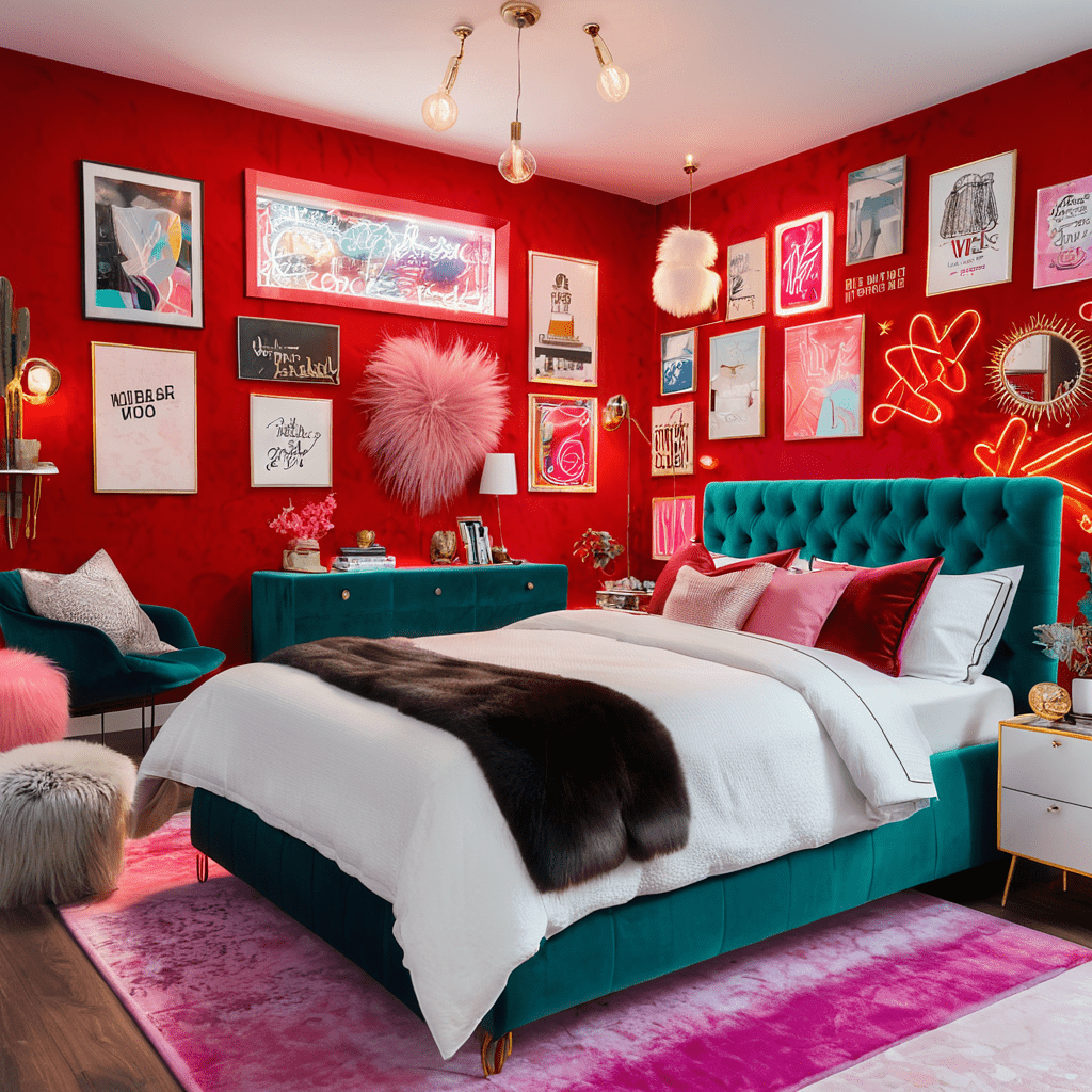 To achieve a feeling of warm and feminine femininity, red and pink could be combined for a loving, calm, and feminine look. You may use a light blush pink for the walls or beds, and red should be included in the accessories such as throw pillows, rugs, or a statement chair. The combination of colors creates a warm, yet inviting atmosphere which feels both elegant and playful. The vintage effect caused by floral patterns and two textures, velvet & silk, easily expresses the feminine side, thus making this proper for girls who prefer gentle but still striking color schemes.