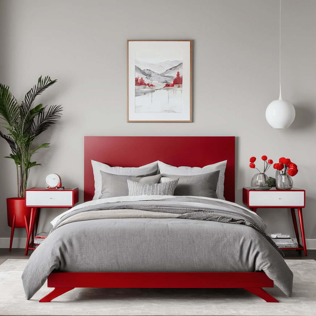 For a contemporary bedroom design, the combination of gray and red is a sophisticated and inviting option. One can achieve this balance by applying various shades of gray to the walls, bedding, and furniture and then integrating accents of red for addendum of warmth and vivaciousness to the space. A red wall with an ombre effect or a striking red headboard is the main visual focus, while the surrounding colors of gray act as a calming balance. Create a perfectflow of bold, contemporary furniture and non-consumingdecor in a room in spaciousness.