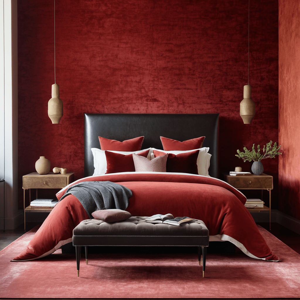 Texture is the most crucial way in which a red bedroom can look expensive and appealing. Combinations of various materials are used to add a decorative finish and prevent a room from being boring. For example, you can vary a velvet pillow with a duvet made of cotton and putting a woolen rug alongside a leather chair. Te\u002Fhe introduction of textured wallpaper, for instance, a red damask texture, also adds an air of luxury. The use of different textures and materials not only enhances the visual aspect of the room but also provides the feeling of being surrounded by layers and is quite sophisticated.