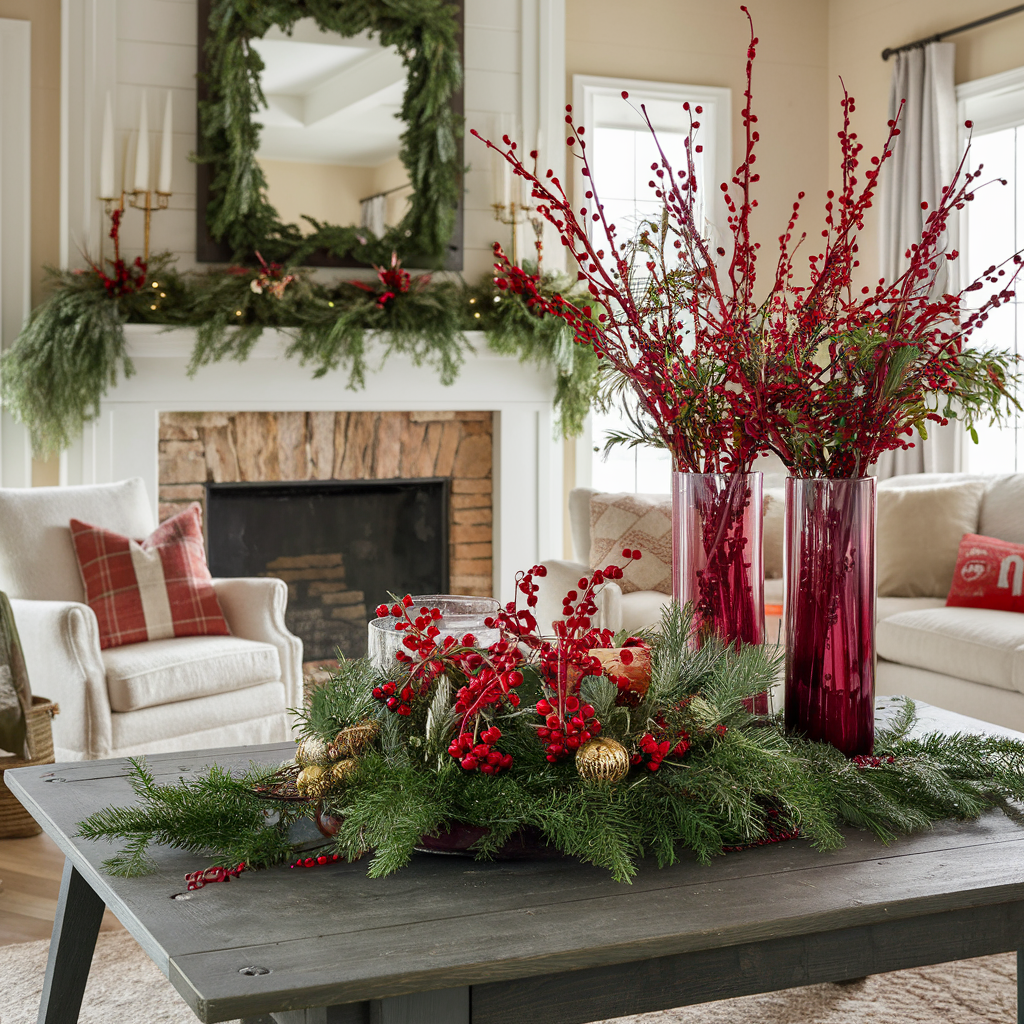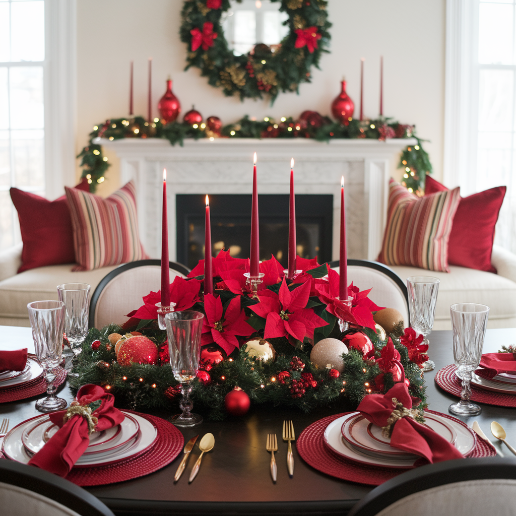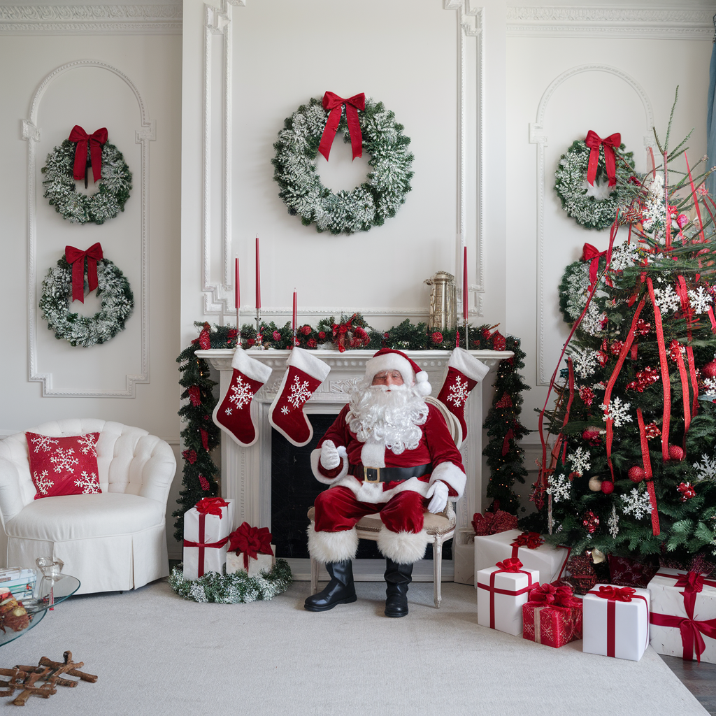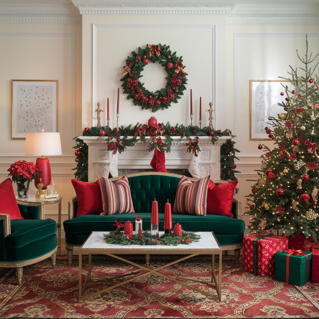 Your mantel is the focal point of your living room during the holiday season, and designing a red Christmas mantel display can make a bold statement. Buzz it on with the chimney broomstick-place green garlands beneath, then add maroon Christmas condemners, candles, and stockings- to make it look uniform. Moreover, you might add red poinsettia, red berries, and striped fabrics of reds and whites for additional variety. The perfect combination of materials and layerings is a rich and delightful decoration that attracts immediate attention and sets the tone for your living room.