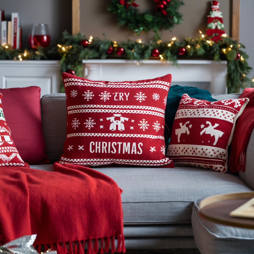 One of the simplest but very effective ways of adding a festive mood to your living room is to include red throws and pillows in your holiday home decor. Make your room look red and feel soft by placing cushioned, padded red pillows and contrast them with the warm and fluffy red throws that rest on the armrests. It is amazing how these elements can really bring the Christmas ambience to your space and make it feel both homey and lively. You have to decide whether you go with the plain ones or choose models with patterns of both reds and whites. They might suit Christmas themes no matter which one you pick.