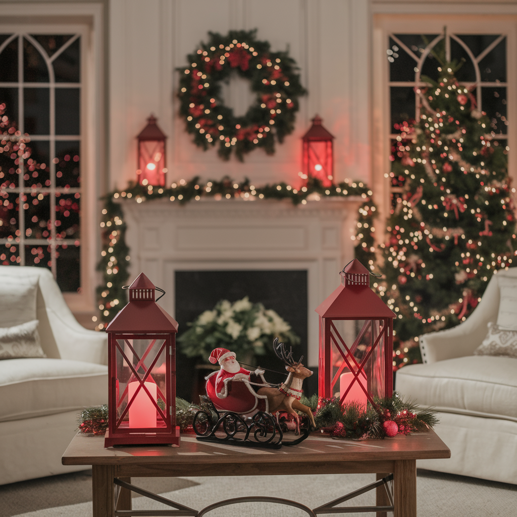 Red lanterns and lights are the perfect choice to give your living room a warm and festive atmosphere during the Christmas season. One way to create a cozy atmosphere is to place red lanterns on the mantel, coffee table, or even the fireplace. Red lights are versatile and they can be all over the house – on the mantel, around the windows, and even on the Christmas tree to create a warm and festive atmosphere. These lighting elements are not only the additions to the holiday decor but also the things that make life a bit more magical at home during those chilly winter nights.