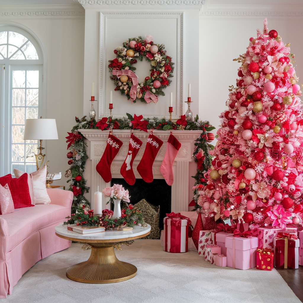 Red and Pink Christmas Living Room Decor for a Soft, Festive Touch