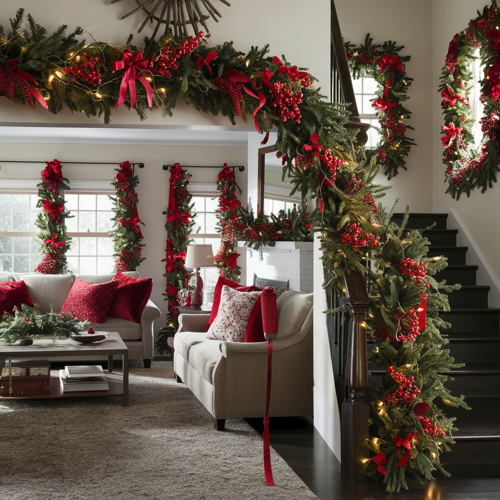 Red Christmas garlands are not only aesthetically appealing but also a good way of filling your living room with warmth and coziness. The use of bright red garlands that are mainly used to decorate tables or Christmas trees can also be an additional detail which will increase the festive color in your house. They can be used for framing windows and doors. Alternatively, mix the ornaments with other earthy shades like green, and pine tree leaves. Adding the ribbons with lights will give the garland a more natural look, for instance.