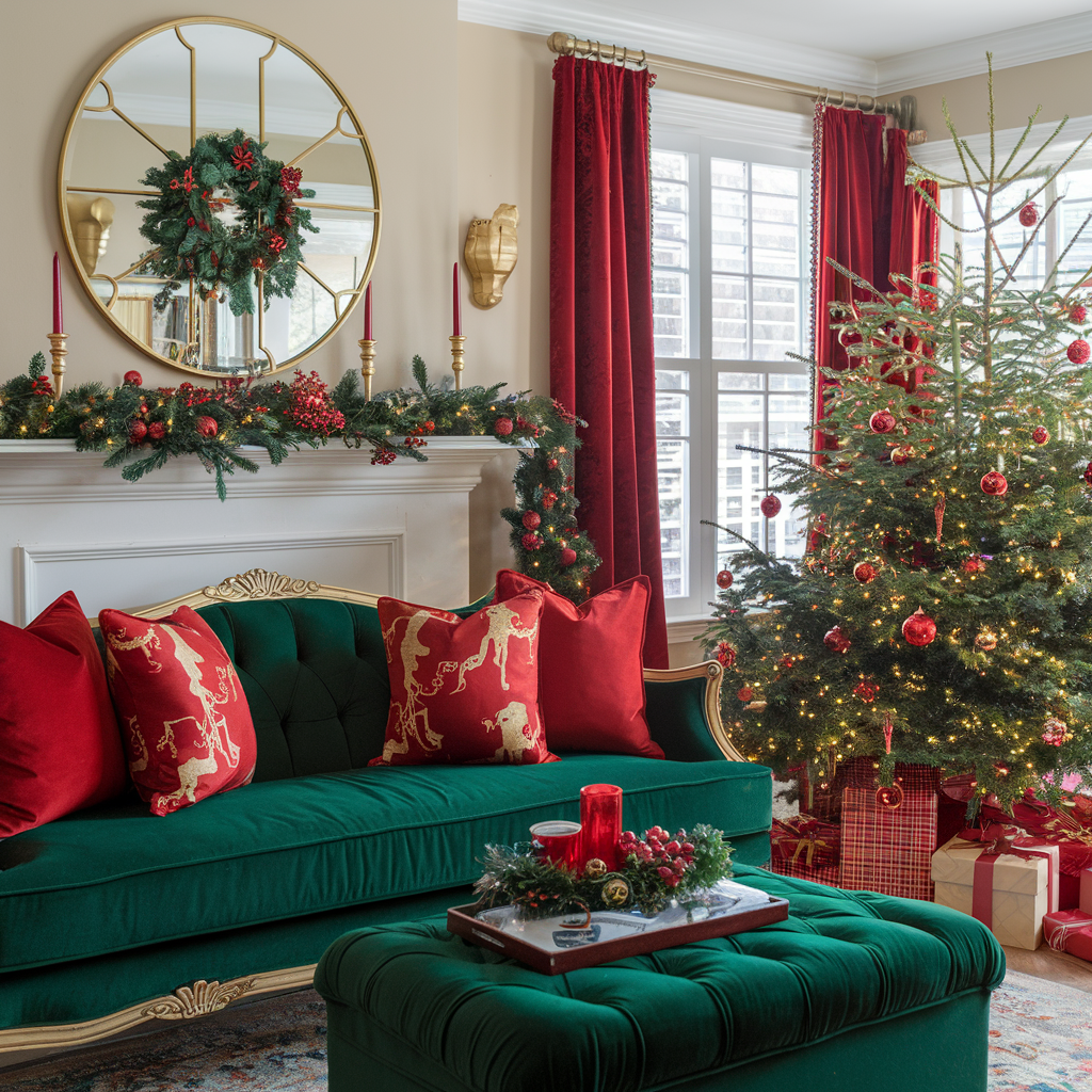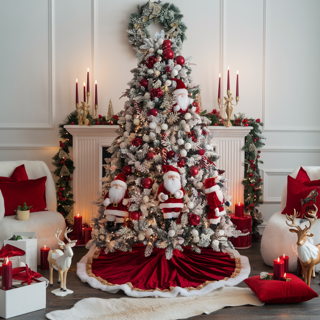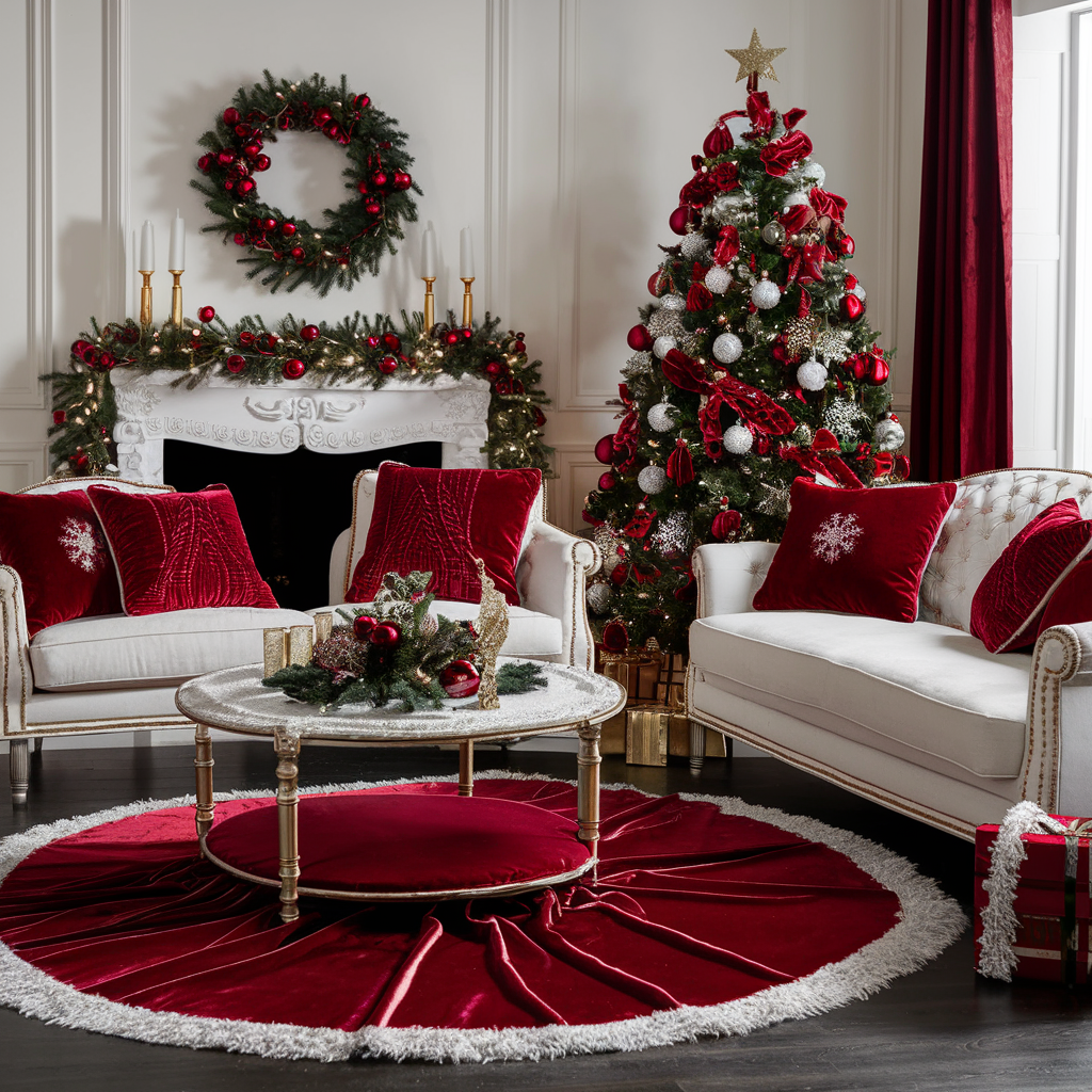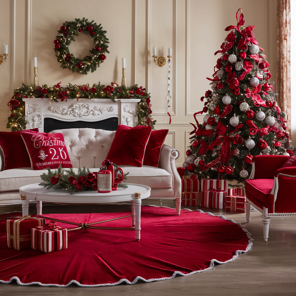 Velvet has long been connected with luxury and opulence, so red velvet is sure to fit perfectly into your Christmas decor. Red velvet cushions, throws, and a red velvet tree skirt are a few of the items that you can utilize to add a touch of opulence to your living room. Moreover, the soft texture and deep color of red velvet made it more perfect for an inviting atmosphere of holiday gatherings. Use red velvet to accentuate gold or silver elements for a sleek, elegant feel, and add sophisticated touches to your festive decor.