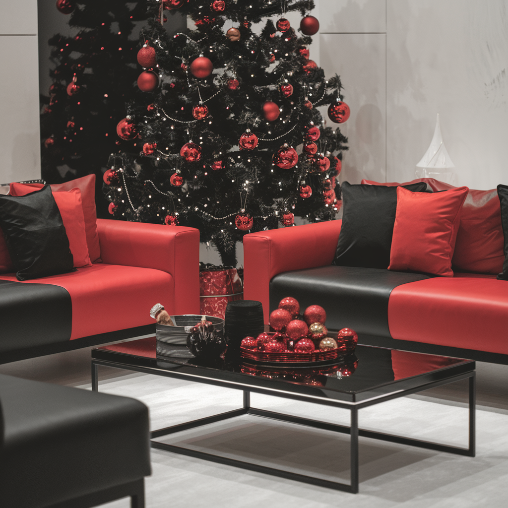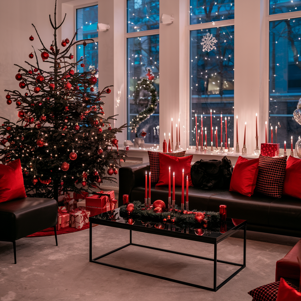 A black and red Christmas theme can be a great way to make your living room look modern and trendy. This extraordinary set-up catches the eye as it brings a surprising color contrast that shimmers in beauty and festivity. Envision a black Christmas tree bespangled with red glittering ornaments, decorated with black and red pillows, and a trendy black coffee table with red candles and festive accents. The result is the evolution of modern and hip makeup that however pops into the holiday decor while keeping it approachable and warm.