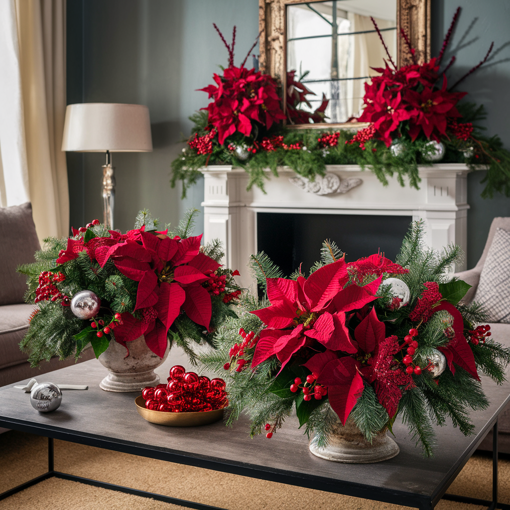 Whatever the form, the red Christmas arrangements are amazing ways to decorate your house with nature’s beauty for the holidays. A great combination of red poinsettias, red berries, and green pine branches would give your arrangement a traditional look. To achieve a more modern look, mix red roses with white lilies and silver accents. You can place such arrangements on your coffee table, mantel, or side tables for a festive touch that is both elegant and impactful.