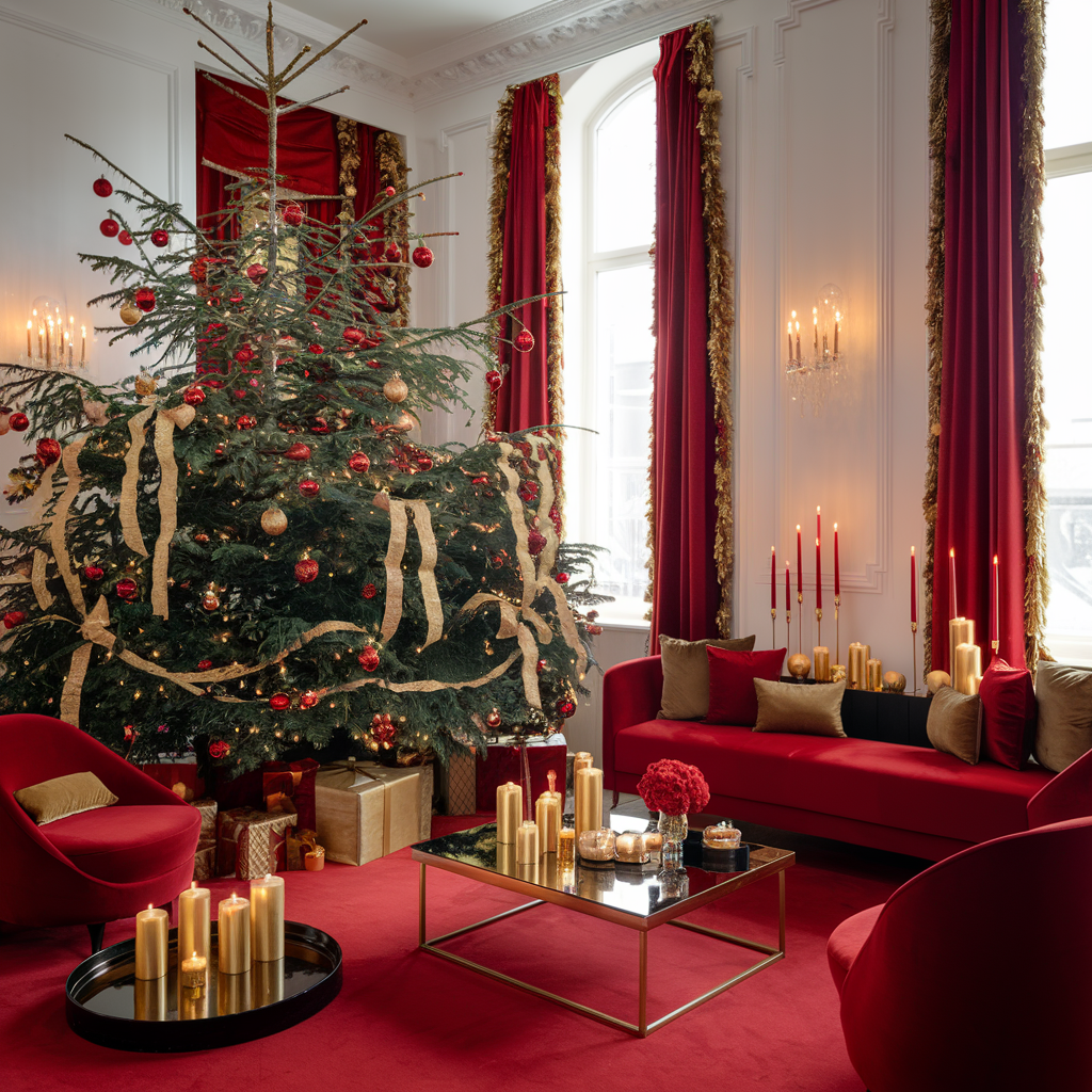Change the interior of your sitting room with red Christmas curtains and drapes, which are able to entirely alter the look and feel of the space. Voluminous red curtains give a Christmas and opulent vibe especially when matched with gold ties or green garlands. Such draperies can be a striking setting for your Christmas tree and other holiday embellishments, resulting in the whole room becoming more harmonious and cheerful. Go for heavy, velvet-like fabrics for an up-to-date and sumptuous look, or choose lighter materials for a more understated one.